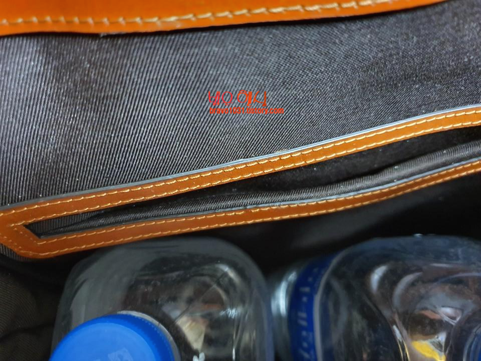 가방이 얼마나 깊으냐면 보관 중 반으로 접혀 있던 가방이라 모양을 잡느라 안 쪽에 2L짜리 생수병 2병을 넣어 둔 상태로 찍었다.