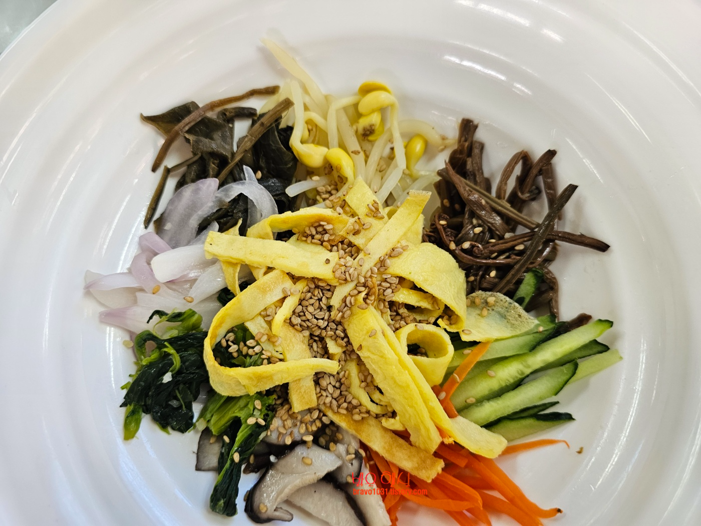 밥은 공기밥으로 따로 나왔고 나물은 산나물, 오이, 당근, 표고버섯, 고사리, 콩나물, 계란지단, 양파, 파란나물 정도였다.
