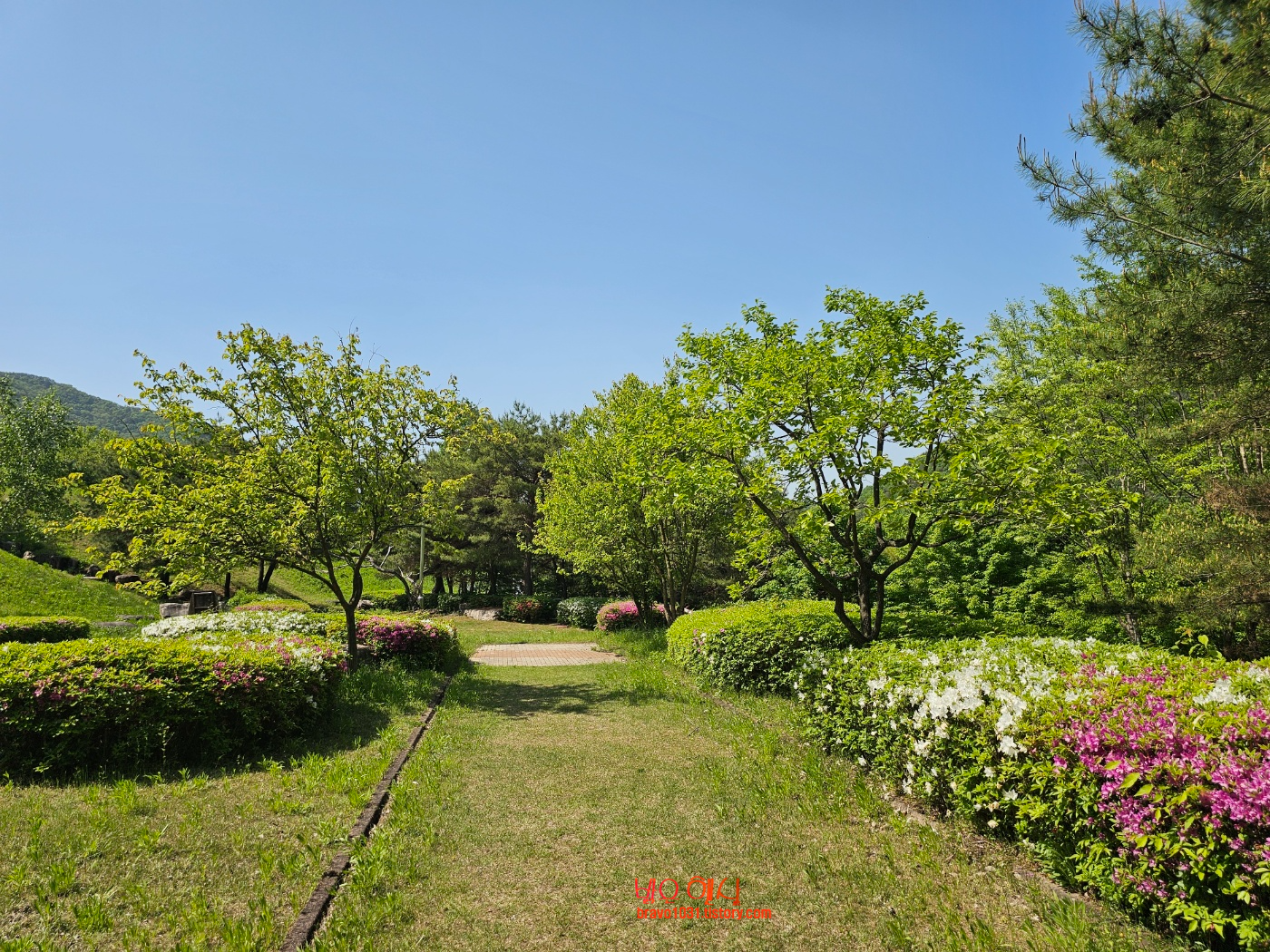 분명 큰 나무들도 제법 많이 있는 곳이지만 산책을 할 수 있는 공간 중 일부에는 큰 나무가 아닌 연산홍, 철죽같은 키 낮은 나무들이 있어서 그늘이 없는 곳도 많았다.