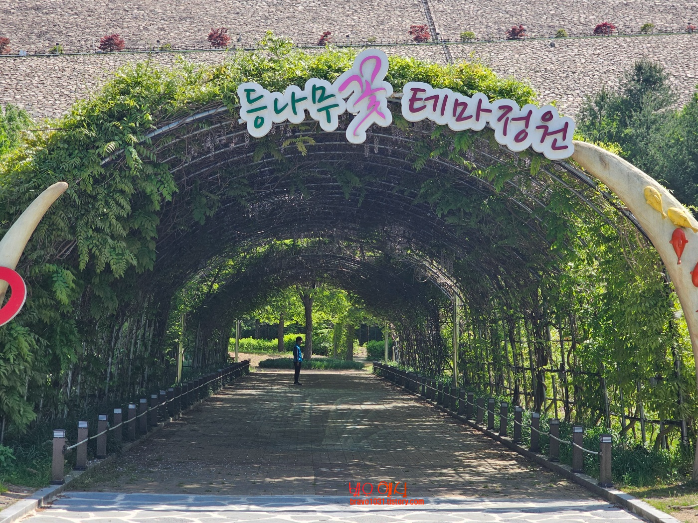그 때는 등나무꽃이 활짝 피는 시기라 밀양댐 아래 공원에 등나무 꽃 터널이 있다는 소식을 들었기 때문이다.