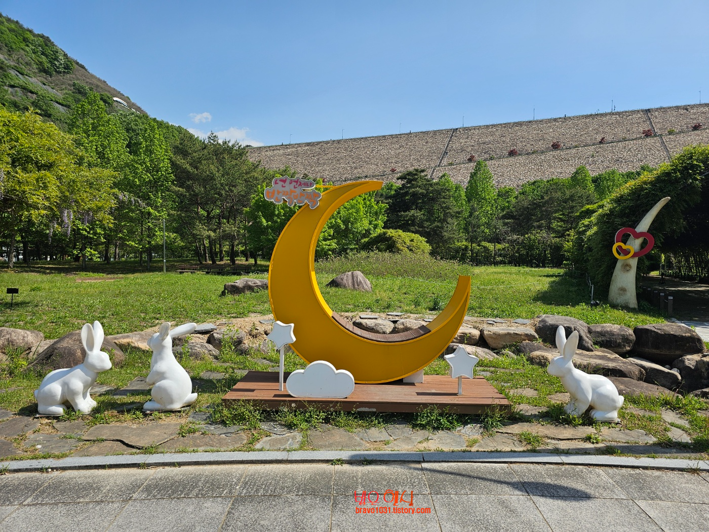 일단 정면으로 삼각형 모양의 조형물이 보였고 그 조형물 뒤로 댐의 모습이 보였다.