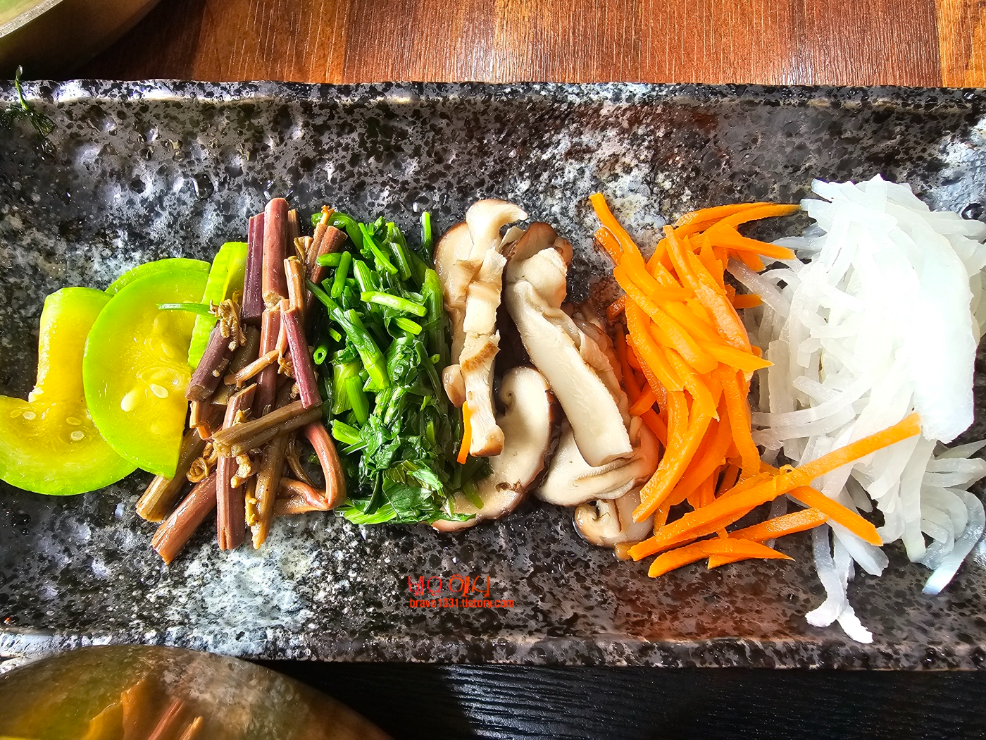 이 곳을 방문했을 때 딸아이가 한약을 먹고 있어서 무를 먹지 못하는 시기라 딸의 무나물을 모두 내가 들고와서 같이 비볐음에도 나물의 양이 적은 듯 했다.