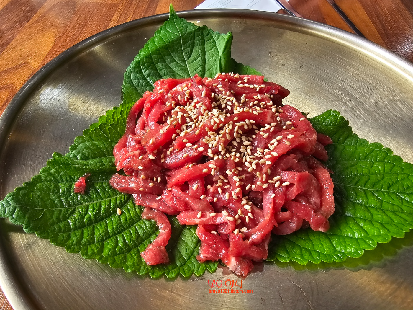그런데 육회를 좋아하는데 육회는 빠질 수가 없어서 육회를 따로 한접시 주문을 했다.
