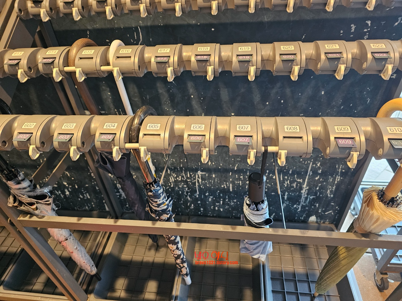 비가 내려서 그런지 우산꽂이가 있었는데 비닐을 사용해서 관람객이 들고 들어가는 것이 아니라 우산꽂이에 꽂고 키를 관람객이 가지고 있다가 나갈 때 열고 가지고 가면 된다.