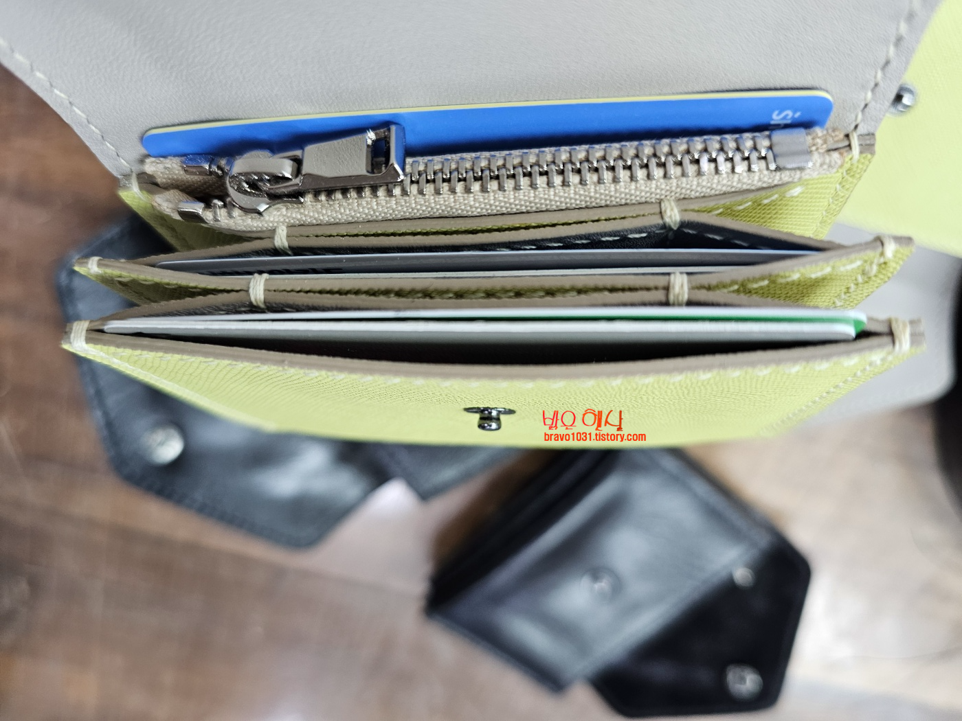 지퍼칸 뒤쪽으로도 카드가 한장 정도 들어갈 수 있지만 많이 들어가지는 않는다.