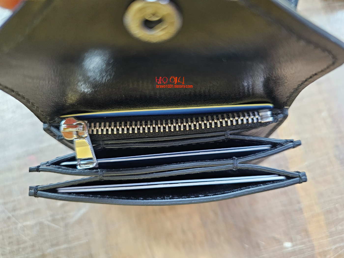 위 사진을 보면 지갑의 맨 안쪽 카드칸은 높이가 조금 짧게 되어 있는 것을 볼 수 있다.