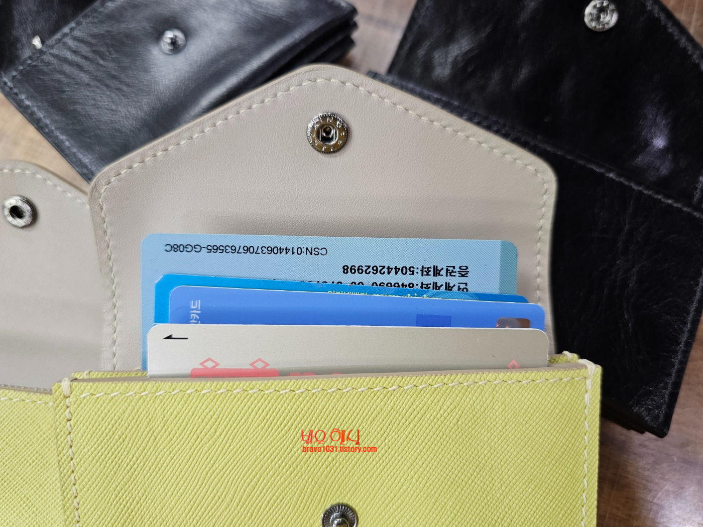 카드 지갑이 아니라면 명함 지갑으로 사용해도 무방한데 명함은 몇장 들어가지 않기 때문에 불편하지 않을까 싶다.