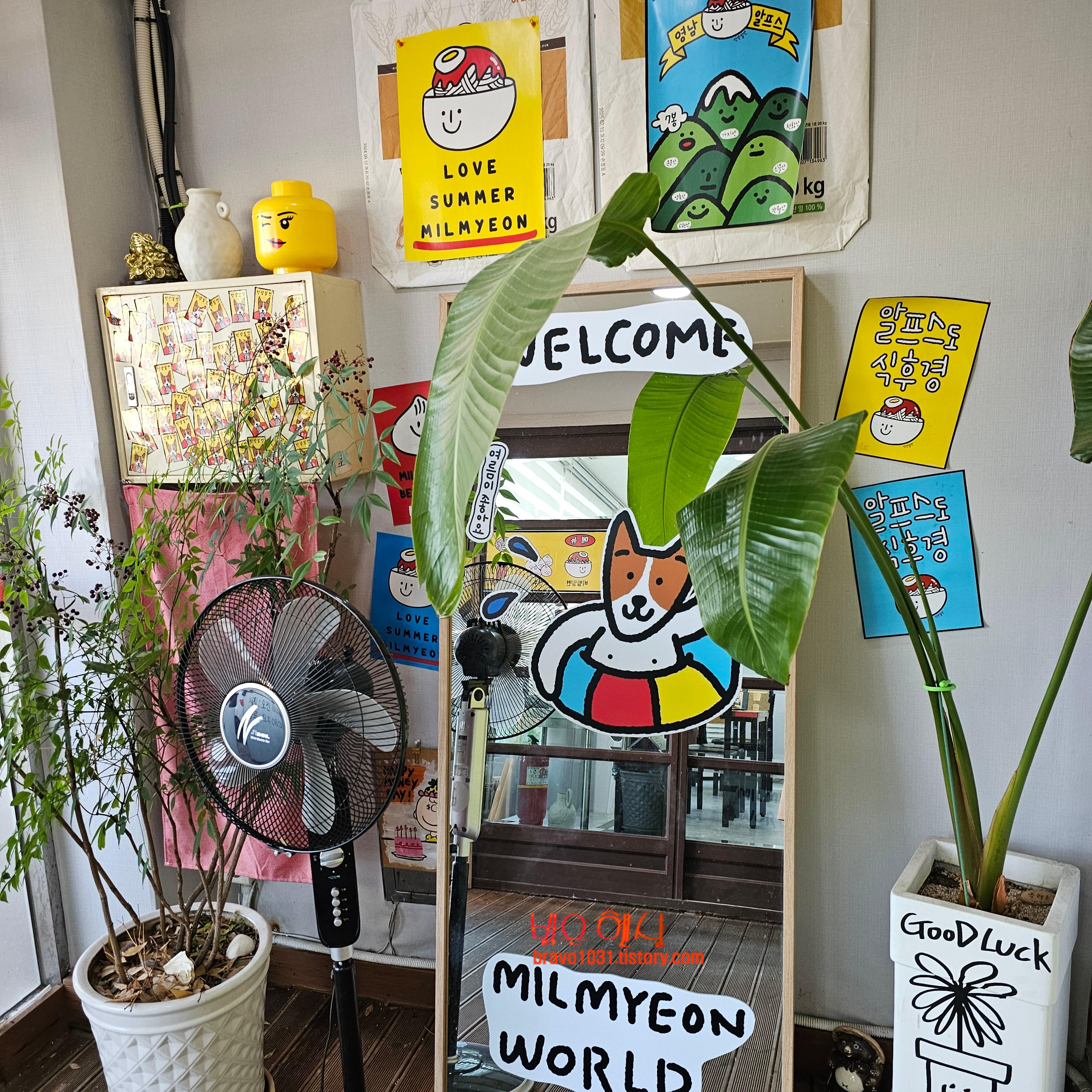 식당 내부는 깔끔한 편인데 밀면을 먹다가 어느 순간 갑자기 손님이 빠지는 순간이 있어서 급하게 한 장 찍었다.
