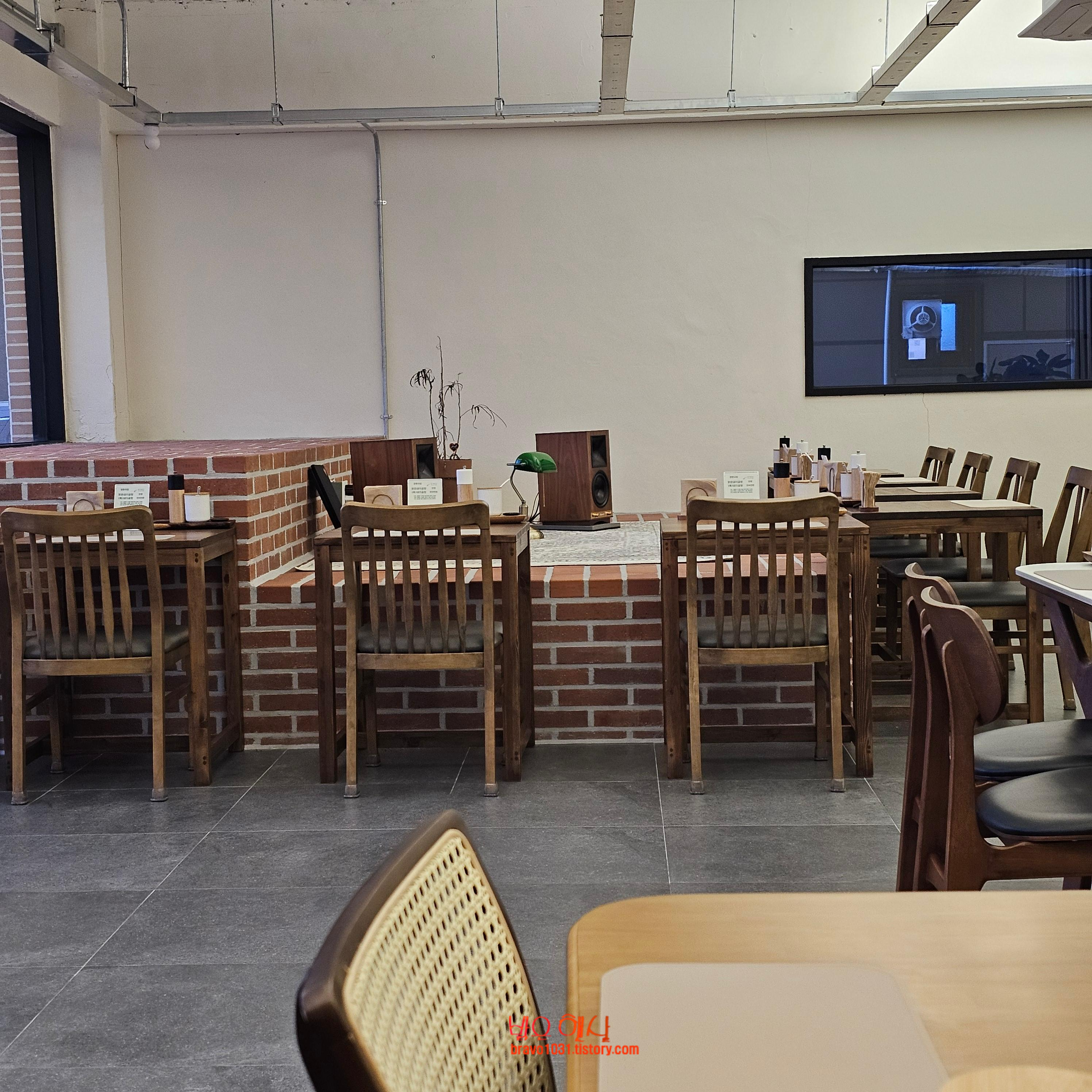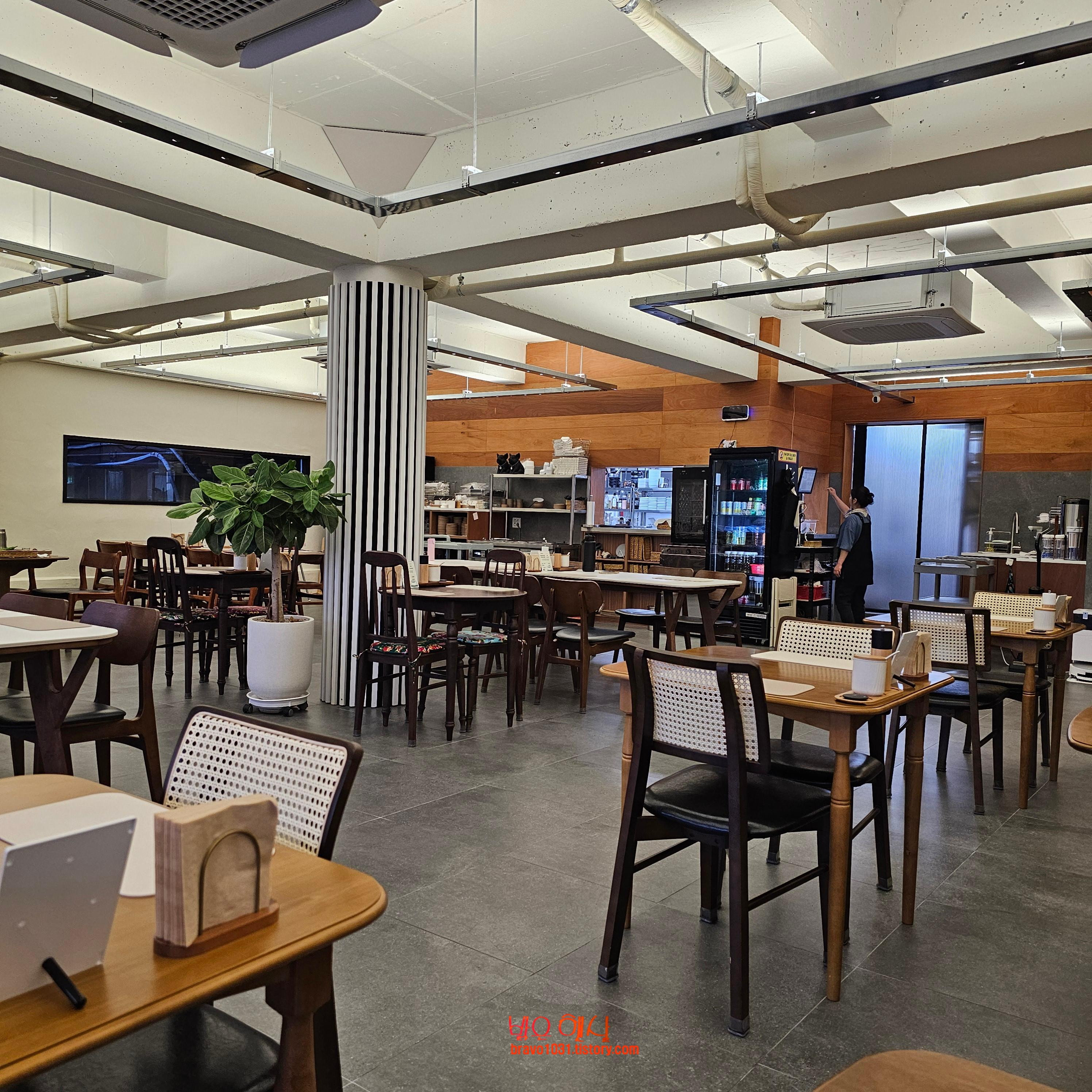 회색의 바닥과 두톤의 나무로 된 테이블과 의자의 어울림이 좋았고 매장이 넓다보니 전체적으로 쾌적해 보였다.