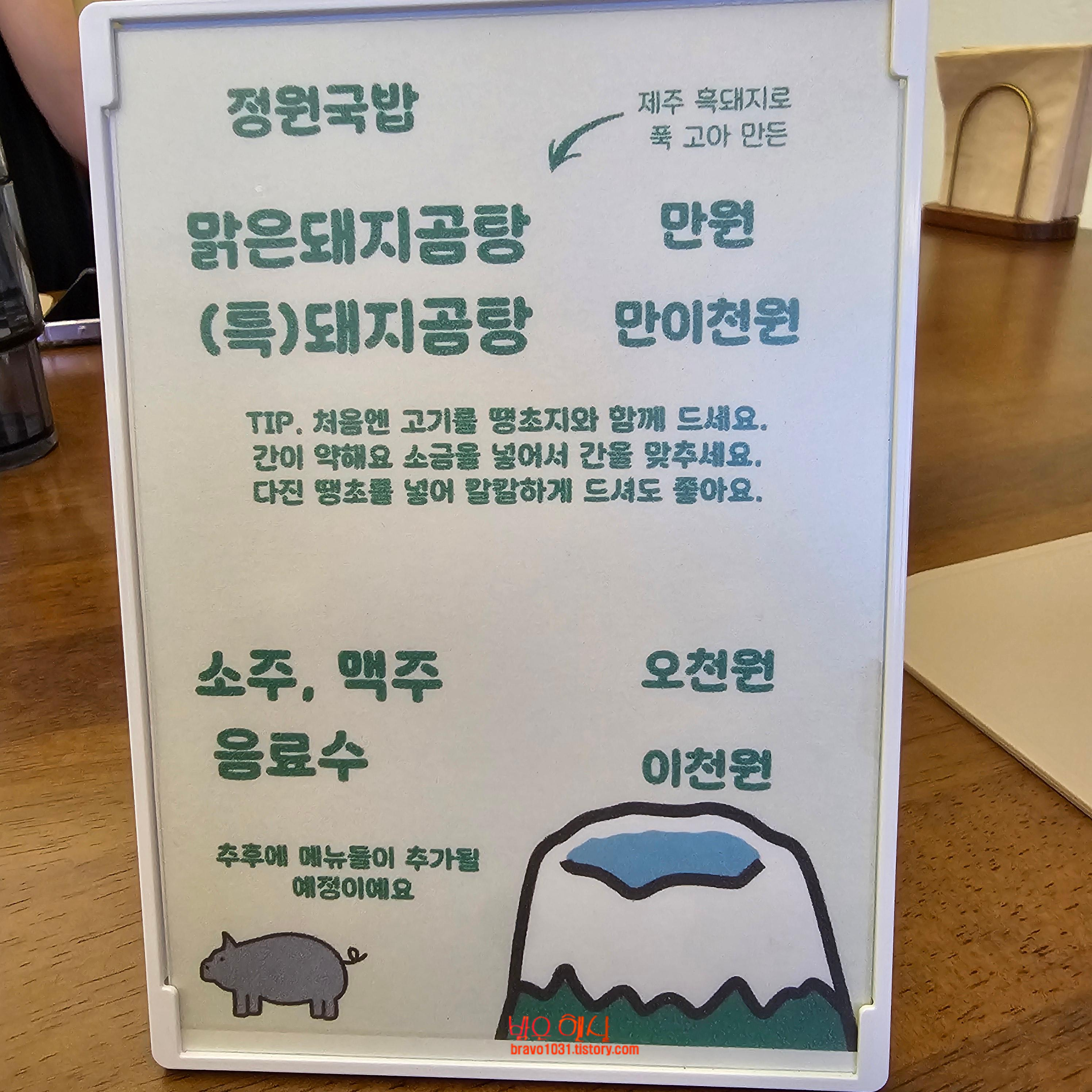 내용도 너무도 단촐해서 맑은돼지곰탕과 특돼지곰탕 딱 두가지였다.