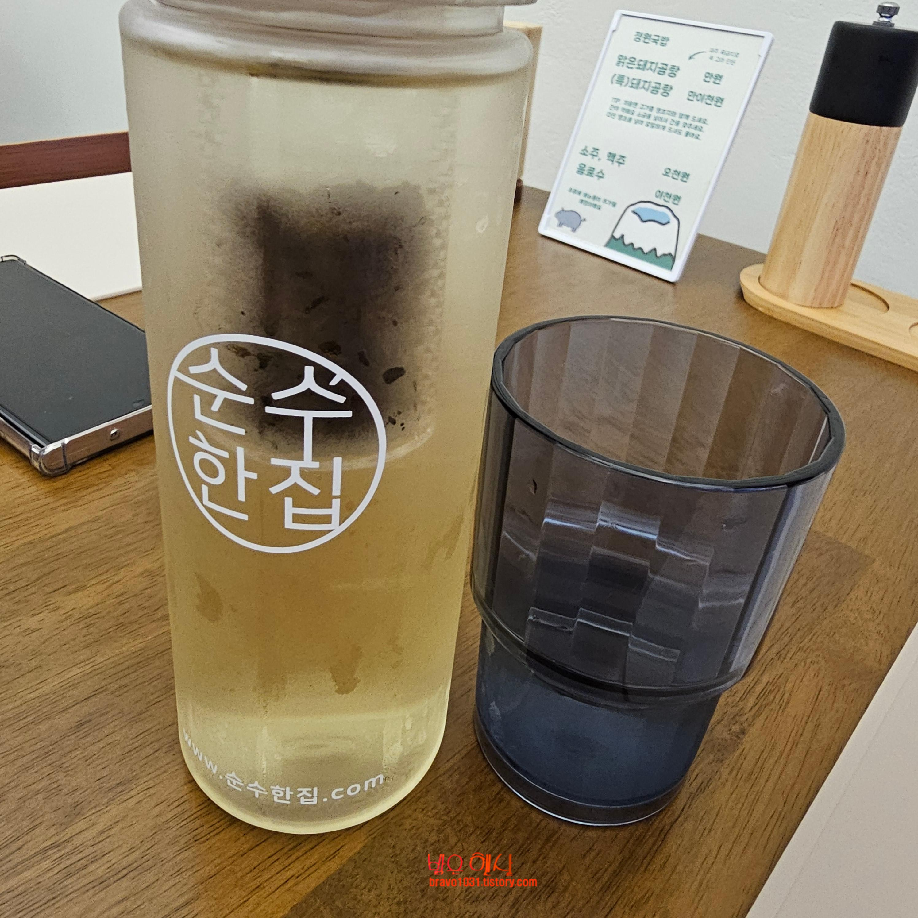 생수에 보리차를 냉침해서 내어 주는데 물이 시원하고 구수해서 정말 맛있게 마실 수 있는 물이었다.