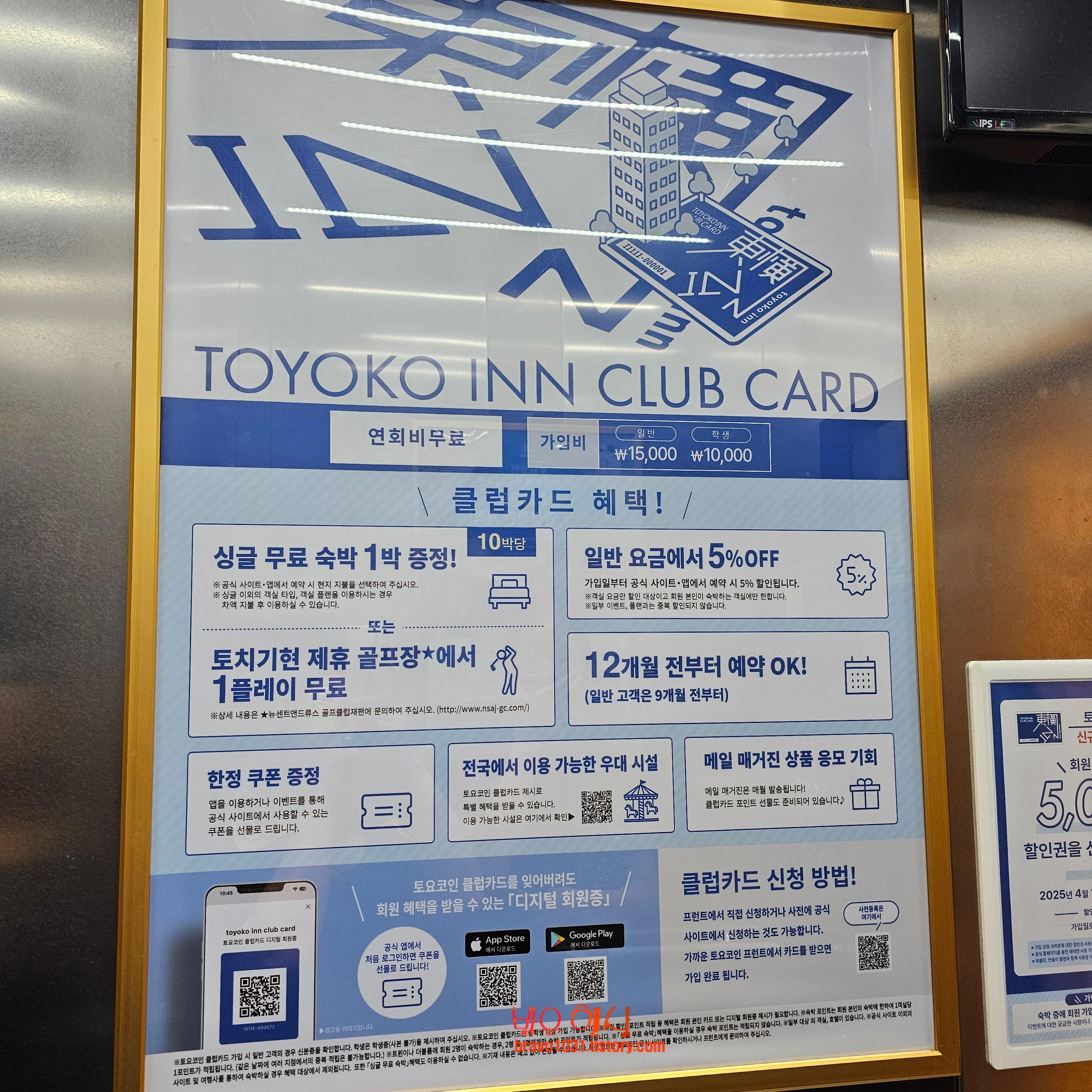 토요코인 회원가입을 할 경우 10박에 1박 무료 리워드도 있으니 그것도 메리트가 있고.