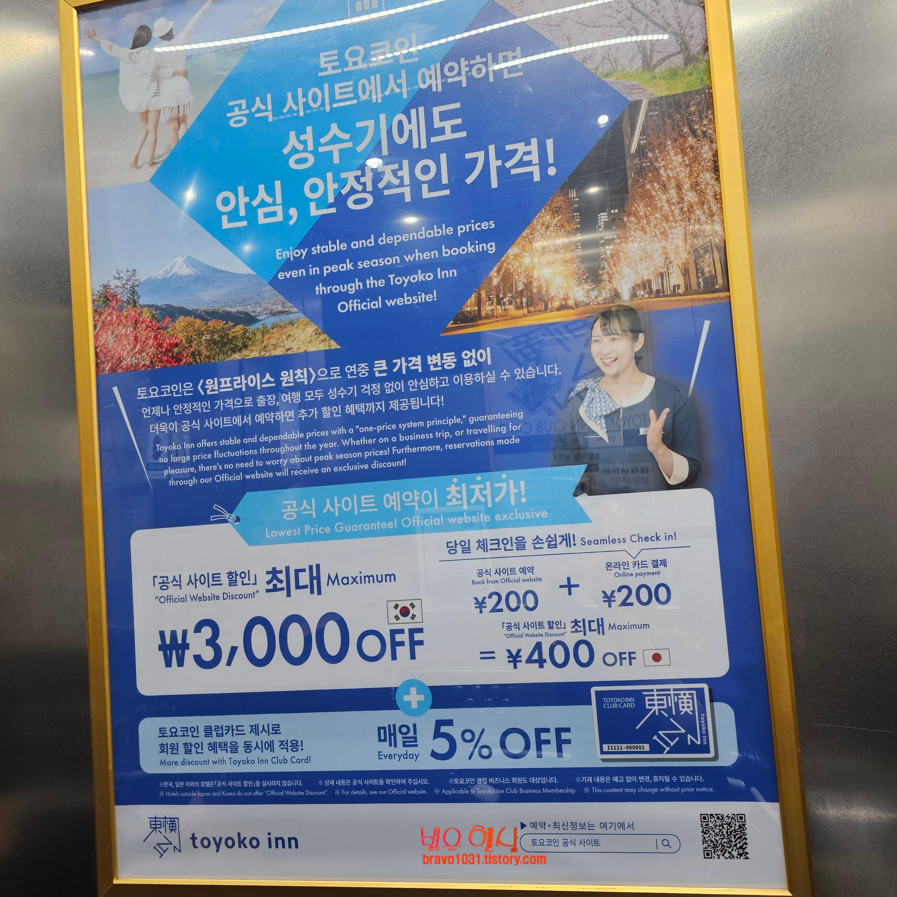 엘리베이터에는 일본 토요코인에서 늘상 보던 포스터가 한글로 적혀있었다.