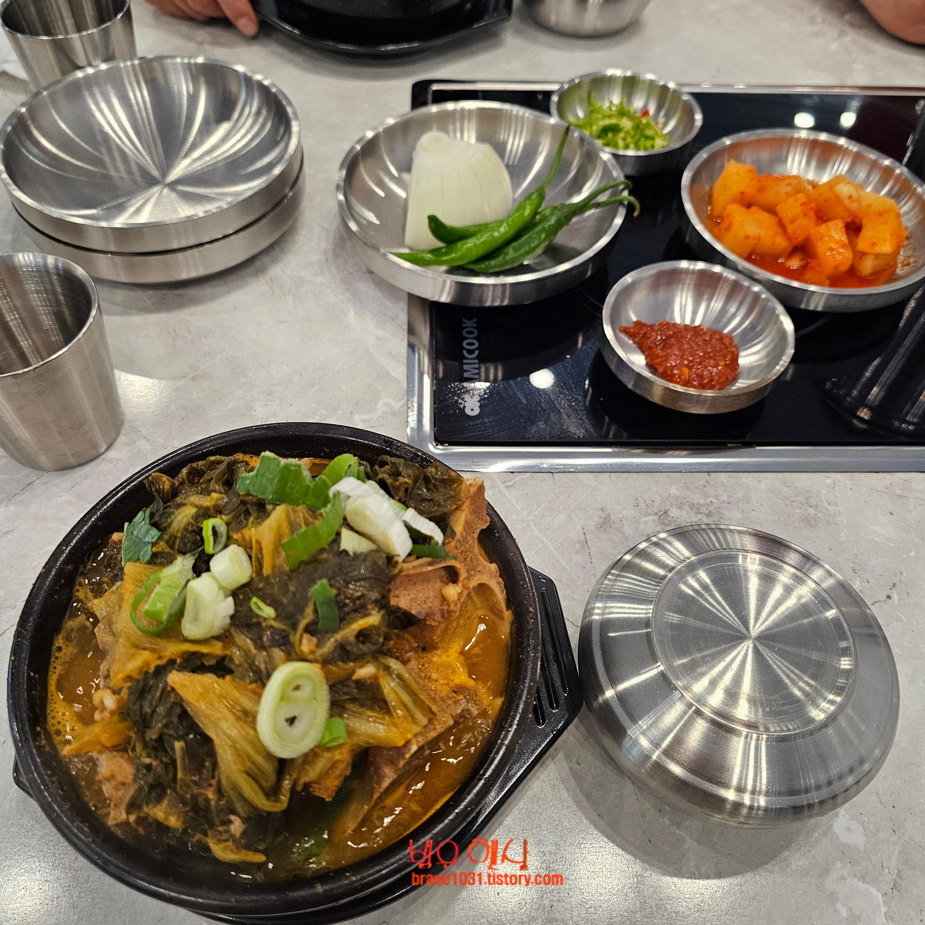 특히 이 집은 감자탕이 아닌 전골이라고 이름을 붙인 것처럼 돼지등뼈가 들어가는 탕이지만 감자는 없고 시래기는 넉넉히 들어가 있다.