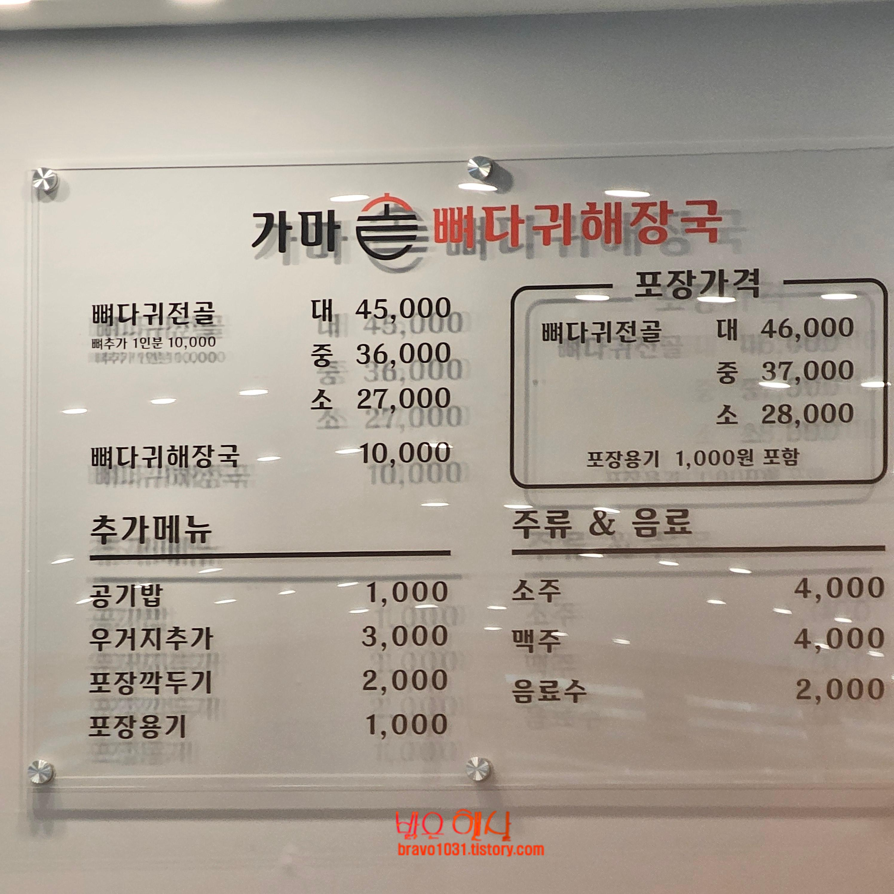 난 이 곳에 방문을 하게 되면 주로 뼈다귀 해장국을 먹는 편이고 가끔 전골 小 사이즈를 포장해 가는 편이다.