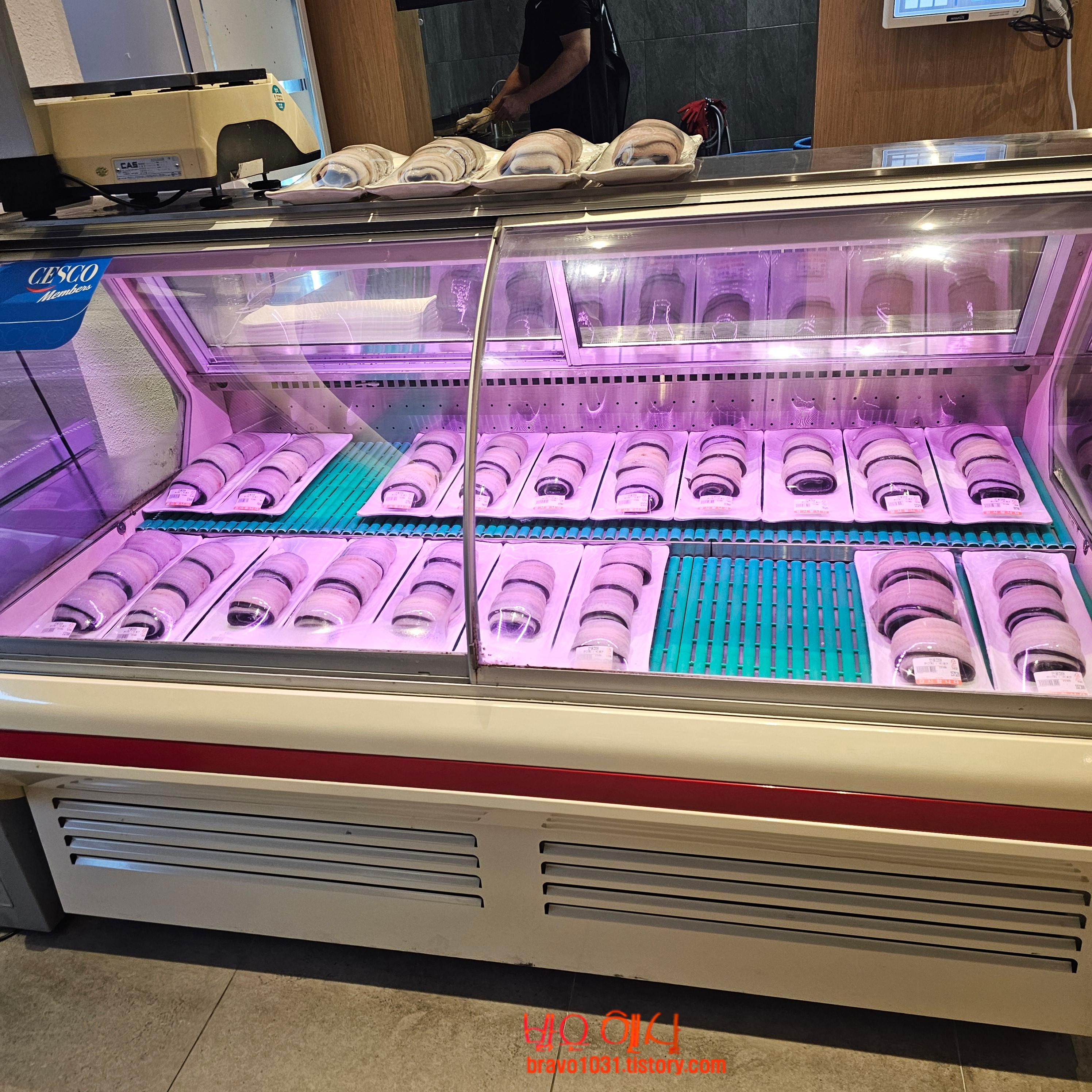 가게 안 쪽에는 장어를 선택할 수 있는 매대가 있다.