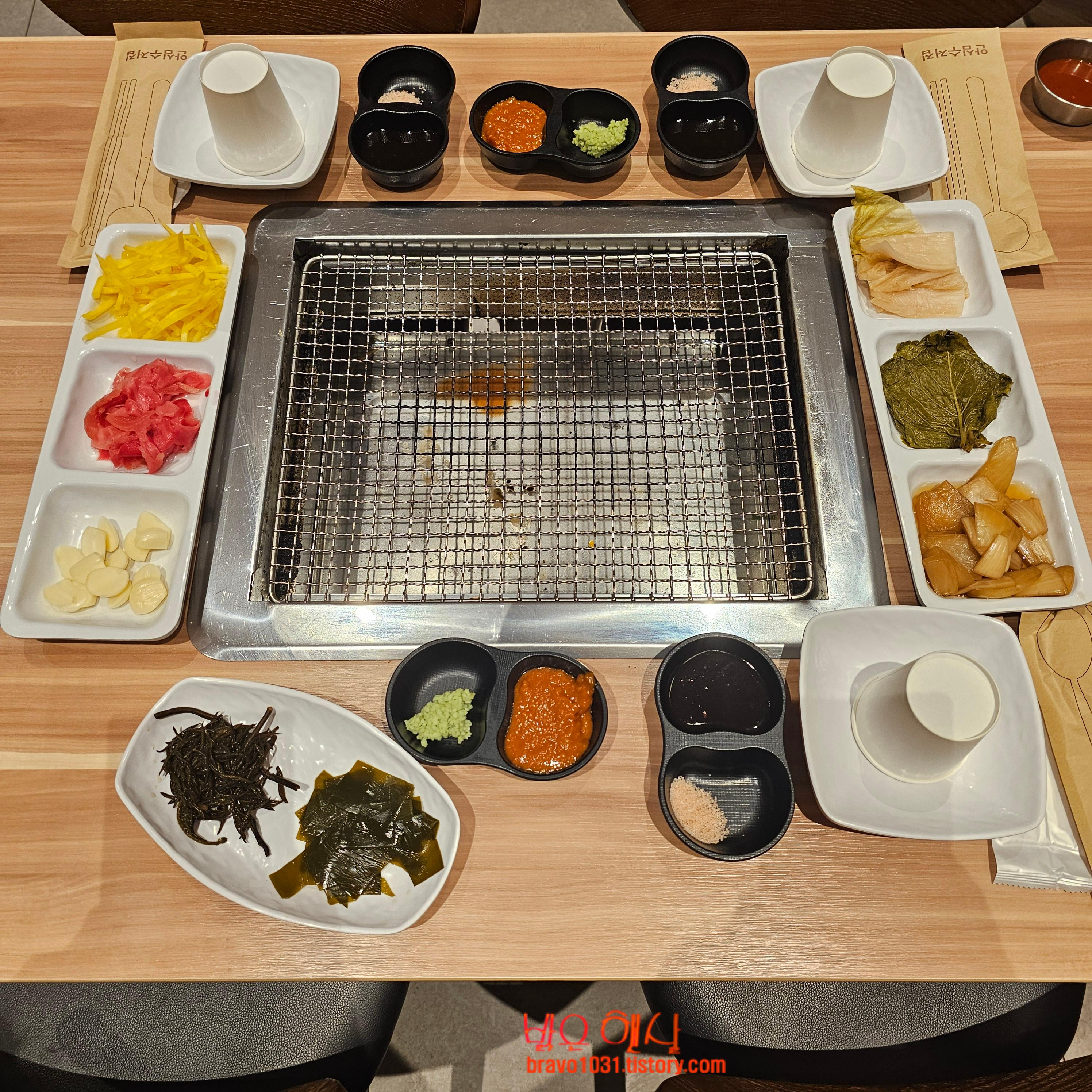 소스류로는 생와사비, 쌈장, 소금, 양념소스, 간장소스 등이 비치되어 있었다.