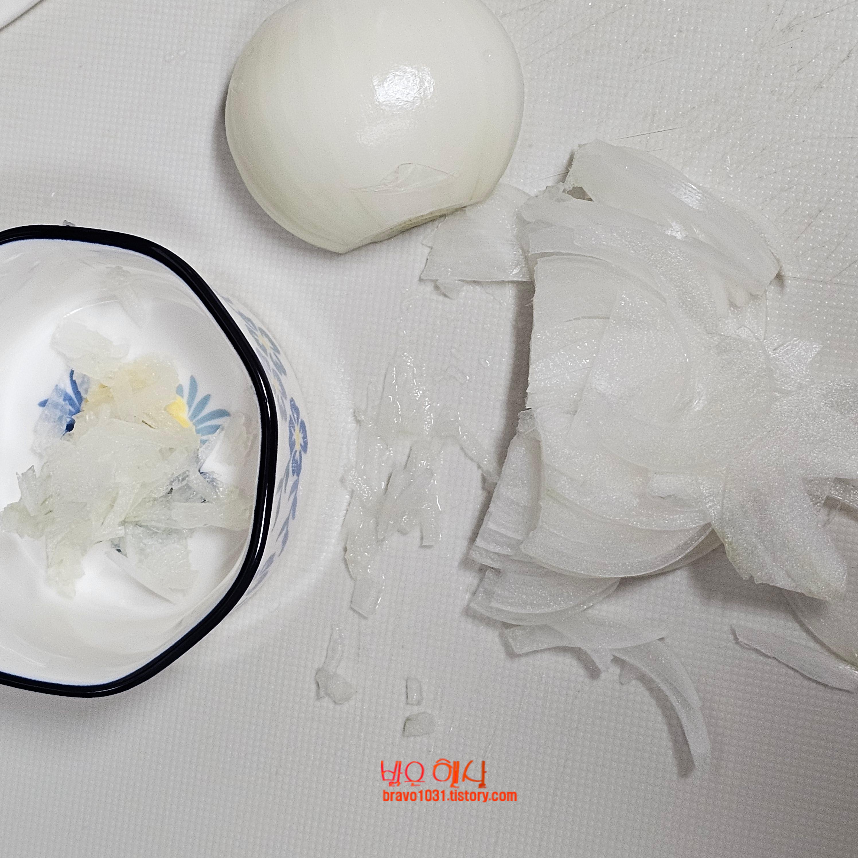 위의 오른쪽 사진에서 보면 양념간장에 양파가 잘 어우러져 있는 것을 확인 할 수 있다.