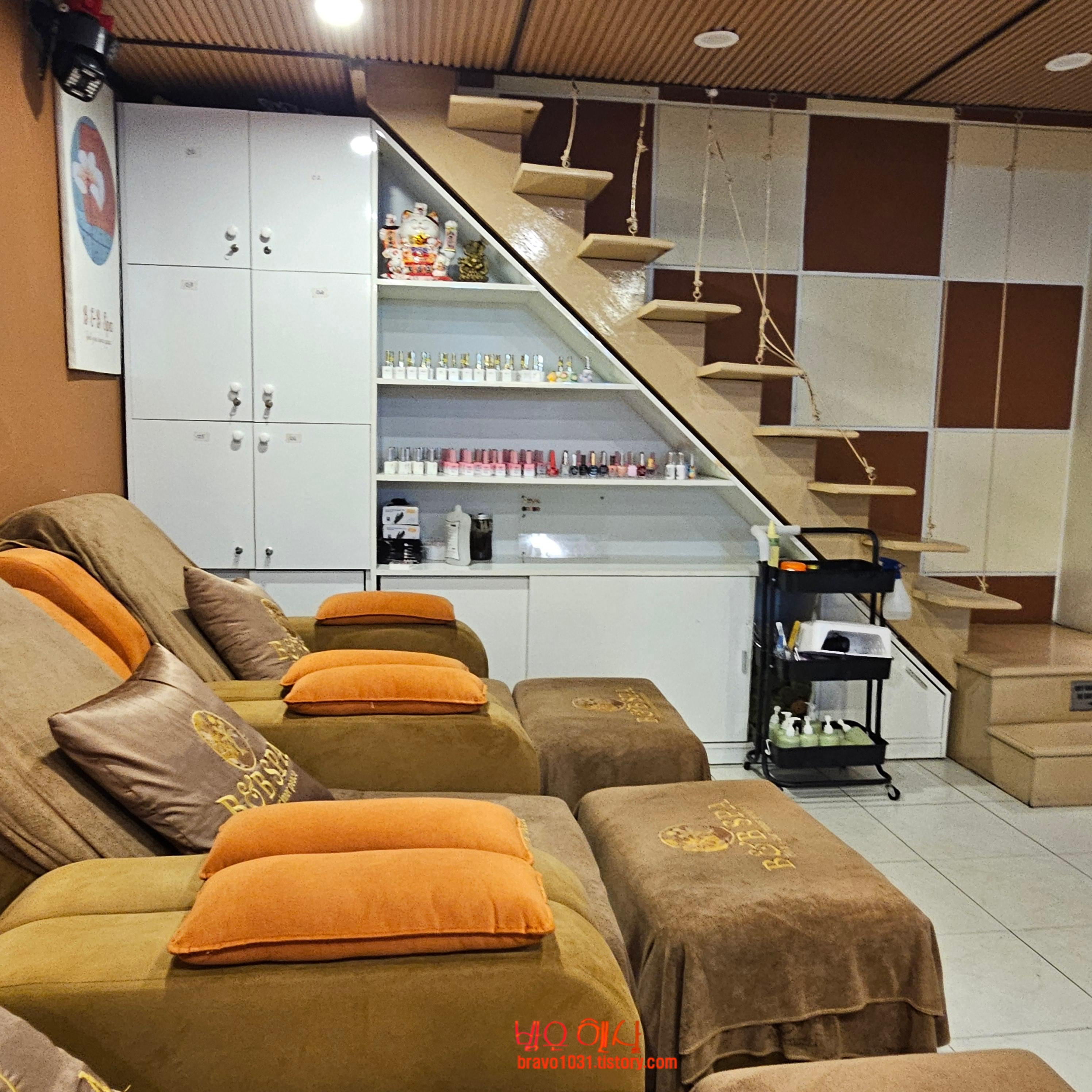 네일도 그 의자에 앉에서 받기 때문에 친구랑 나는 의자 하나식 차지하고 앉아서 난 네일을 먼저 받고 친구는 발 맛사지를 먼저 받았다.