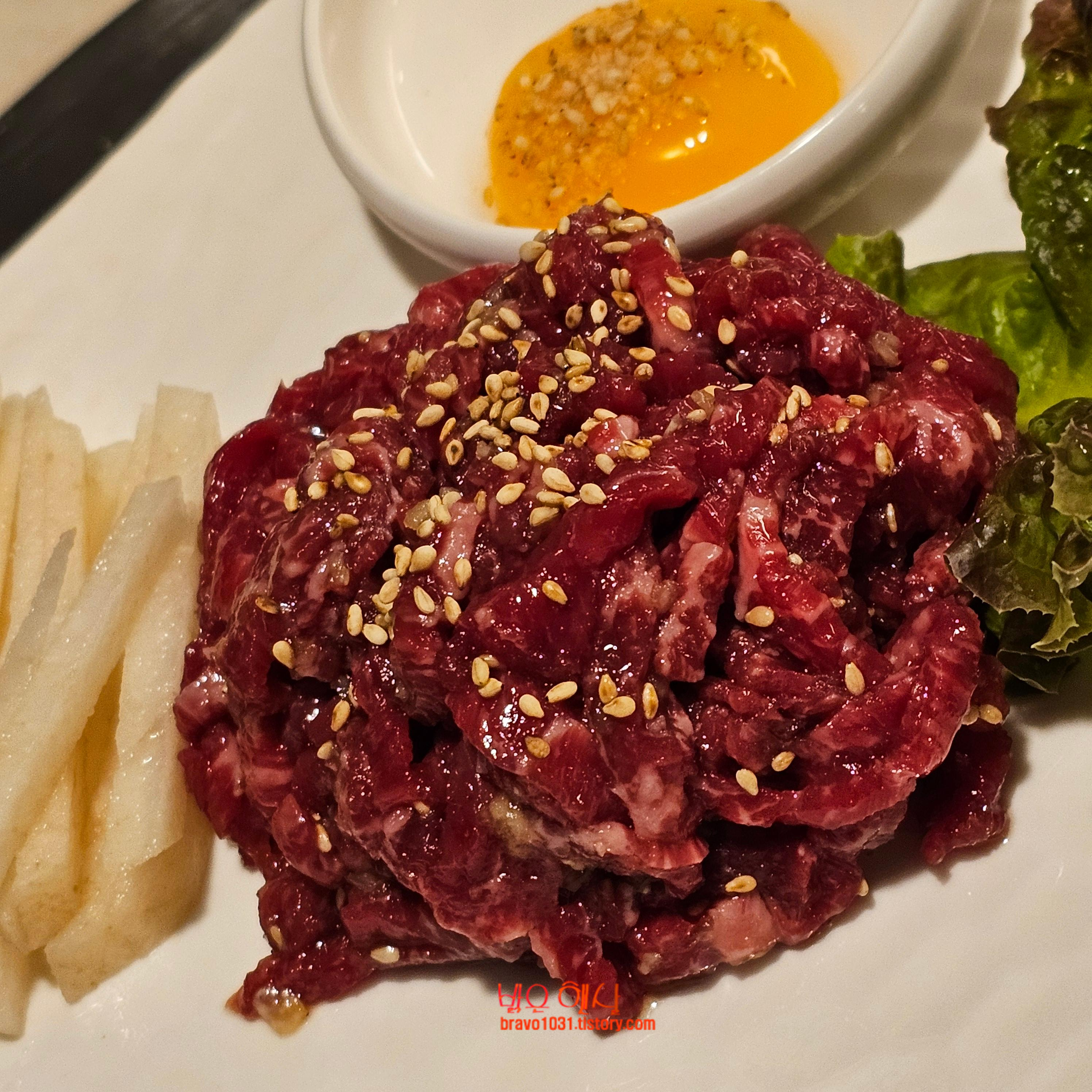 육회를 잘 못하는 곳은 양념을 강하게 해서 양념맛으로 먹는 곳도 있는데 이 곳은 육회 양념은 강하지 않아서 괜찮았다.