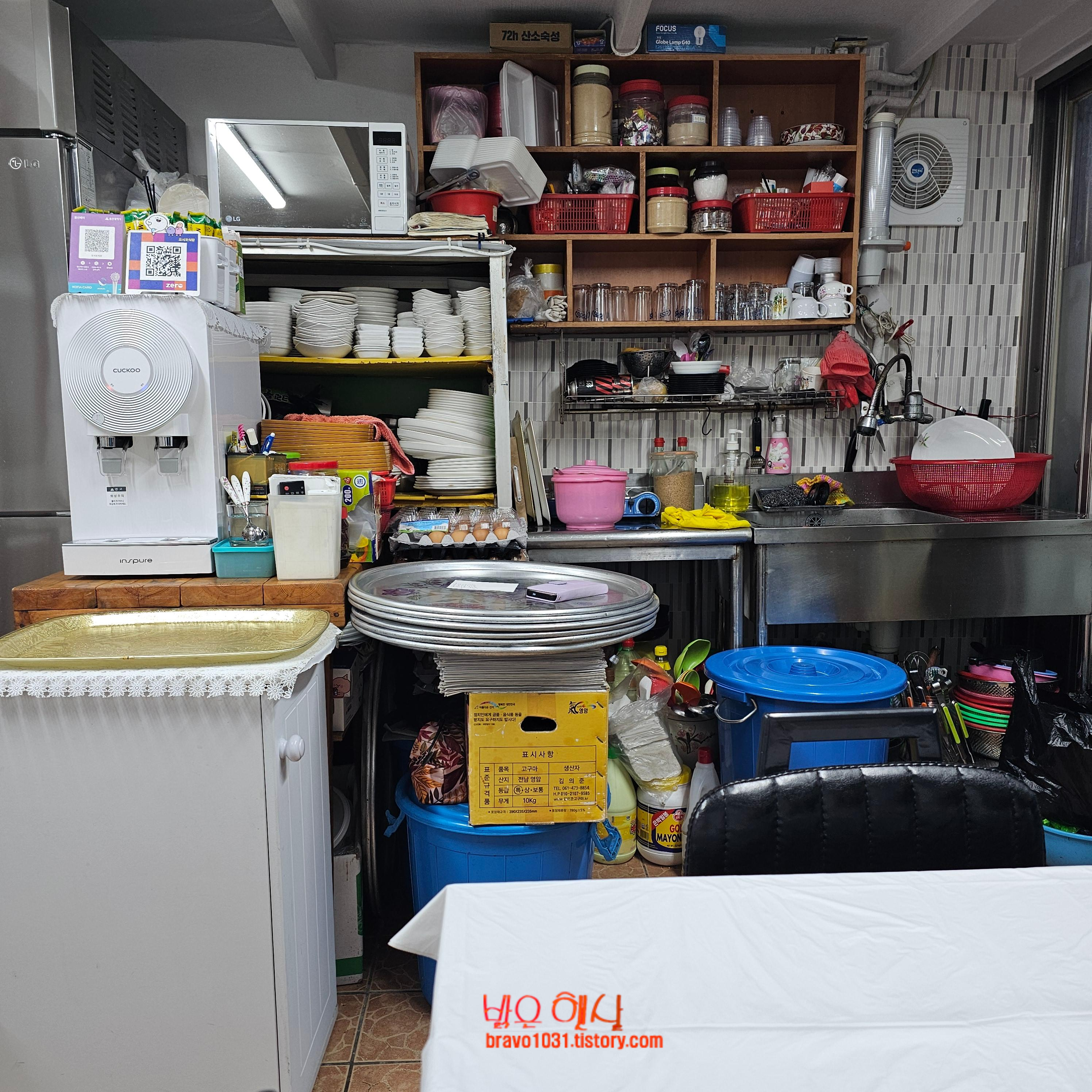 안쪽으로 테이블이 세개 정도 있는데 조리공간이랑 바로 붙어 있어서 아주 다닥다닥 불편할 정도로 좁다.