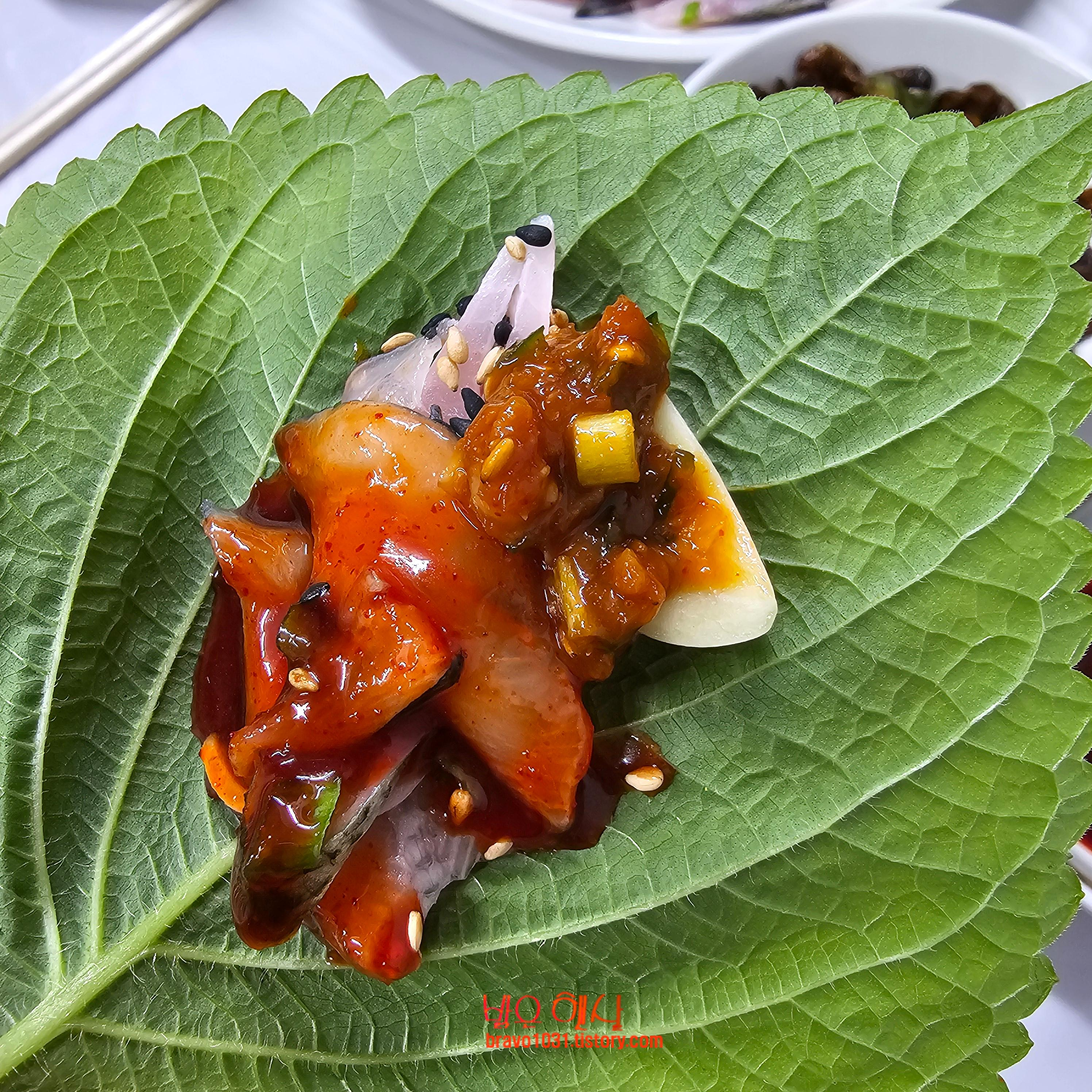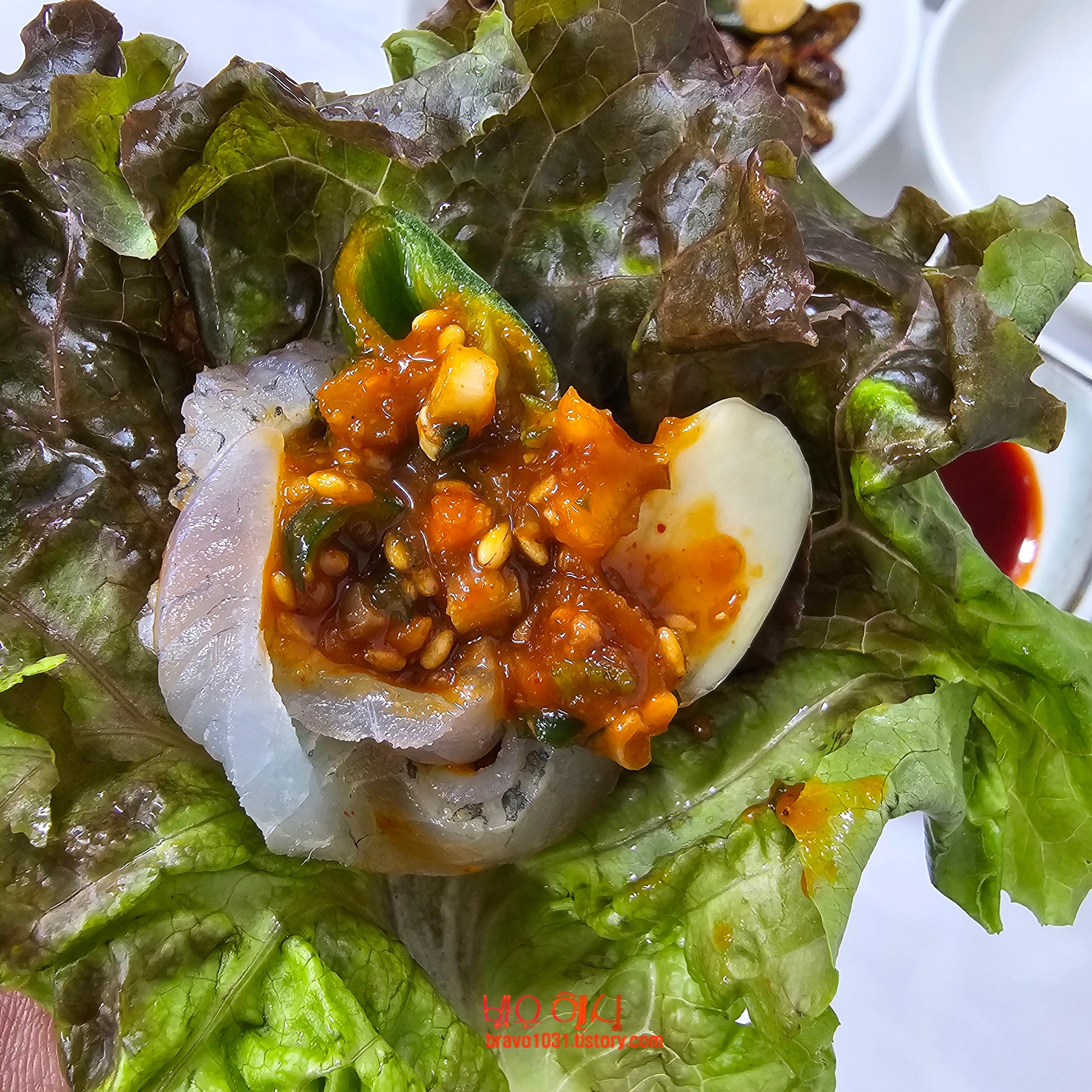 하지만 이 곳의 양념쌈장이 너무 맛있기 때문에 양념쌈장과 초장을 번갈아 가면서 먹었다.