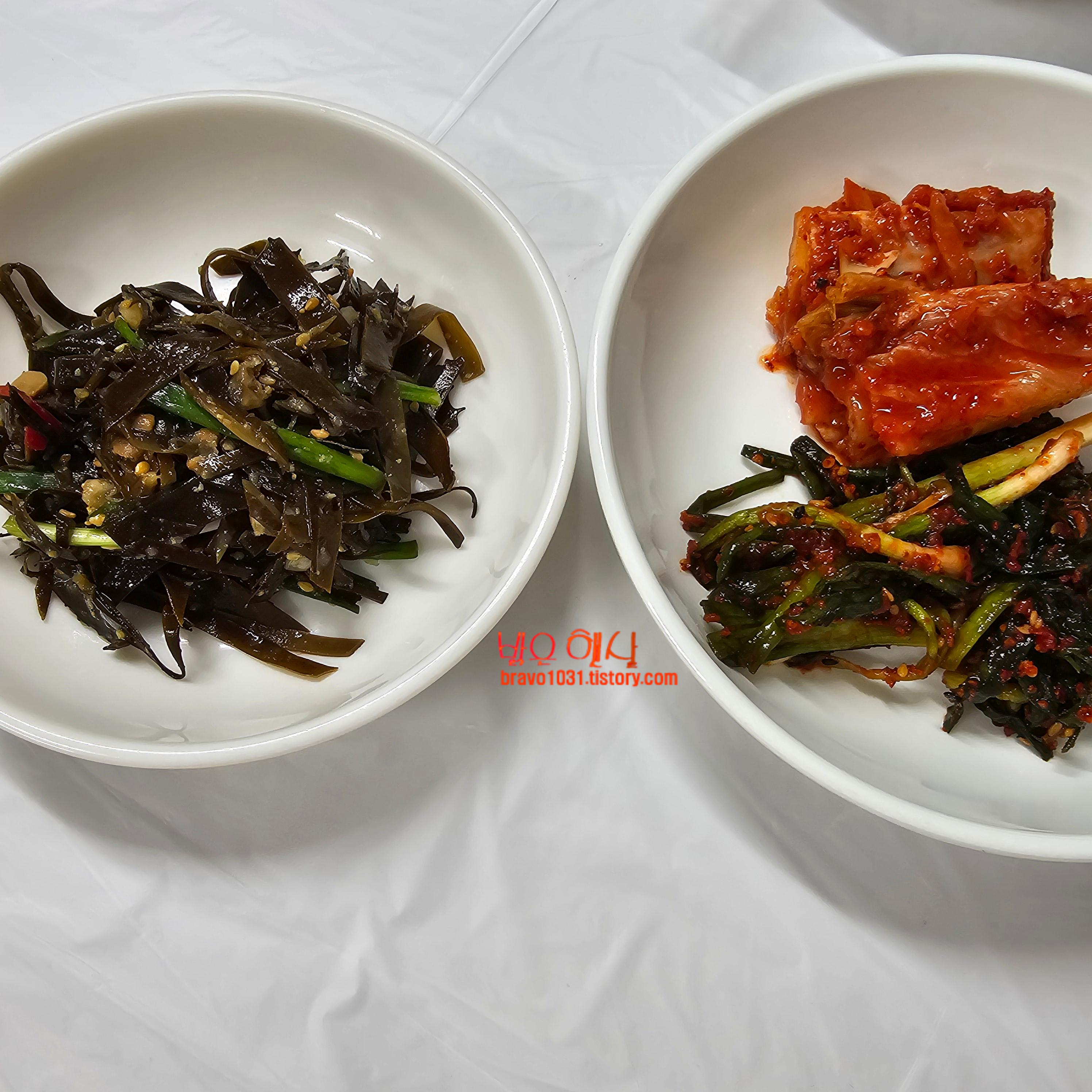 이 날은 파김치, 배추김치, 곤피채 무침이었다.
