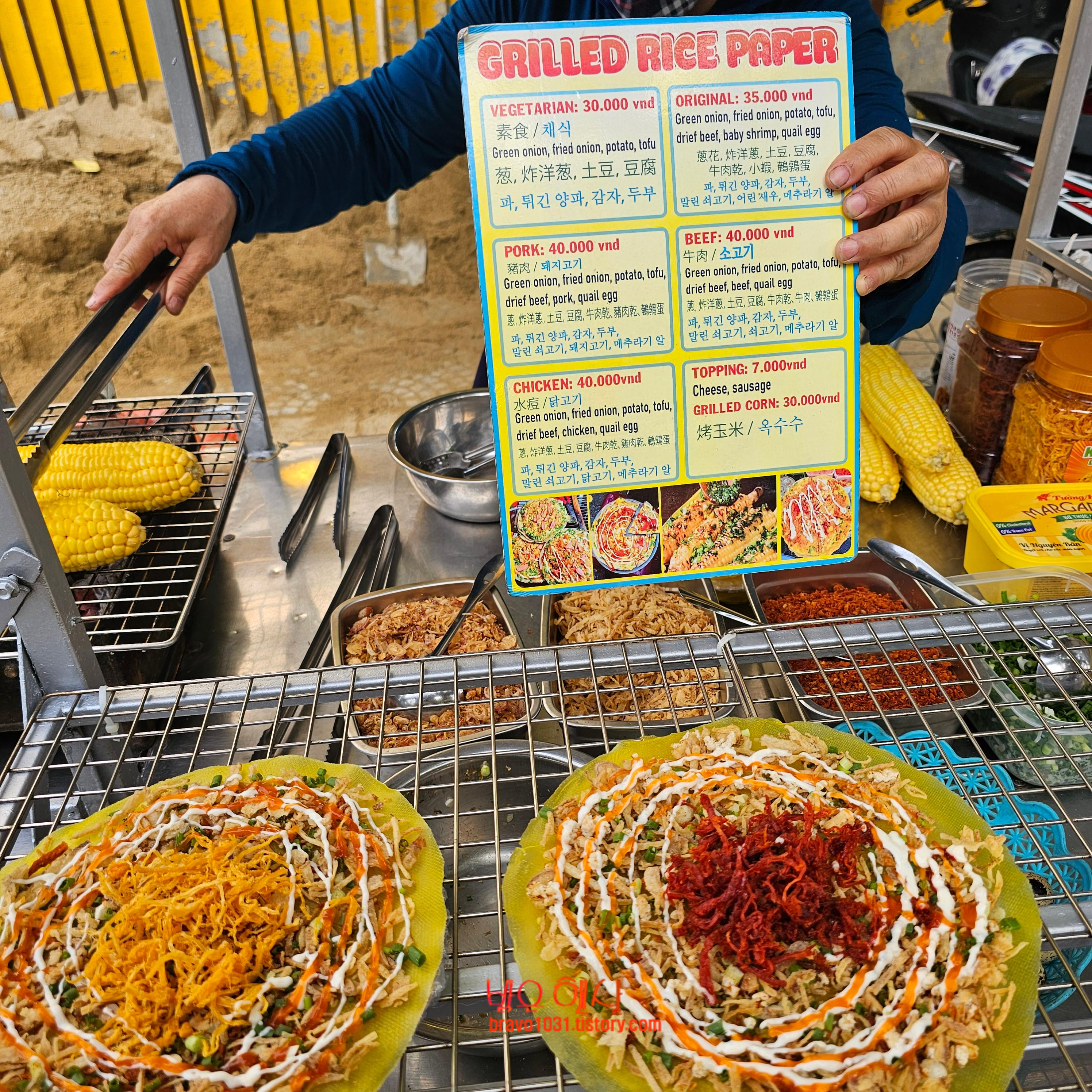야채 3만동, 오리지널 3만5천동, 돼지고기 4만동, 쇠고기 4만동, 닭고기 4만동, 구운 옥수수 7천동