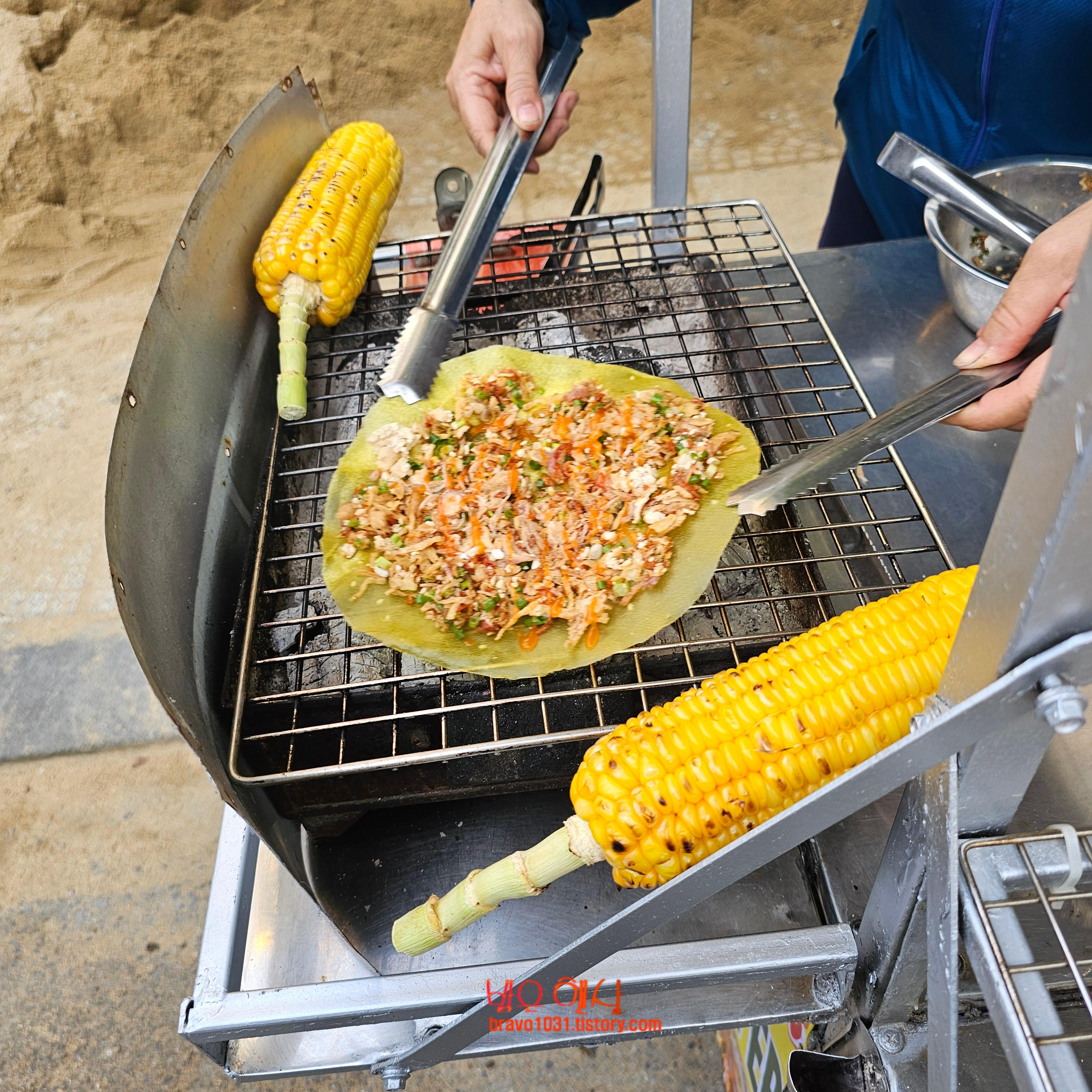 조금 더 시간을 보내고 난 다음 야시장 오픈때 오자며 발길을 돌리다가 보게 된 길거리 음식이 눈에 띄었다.