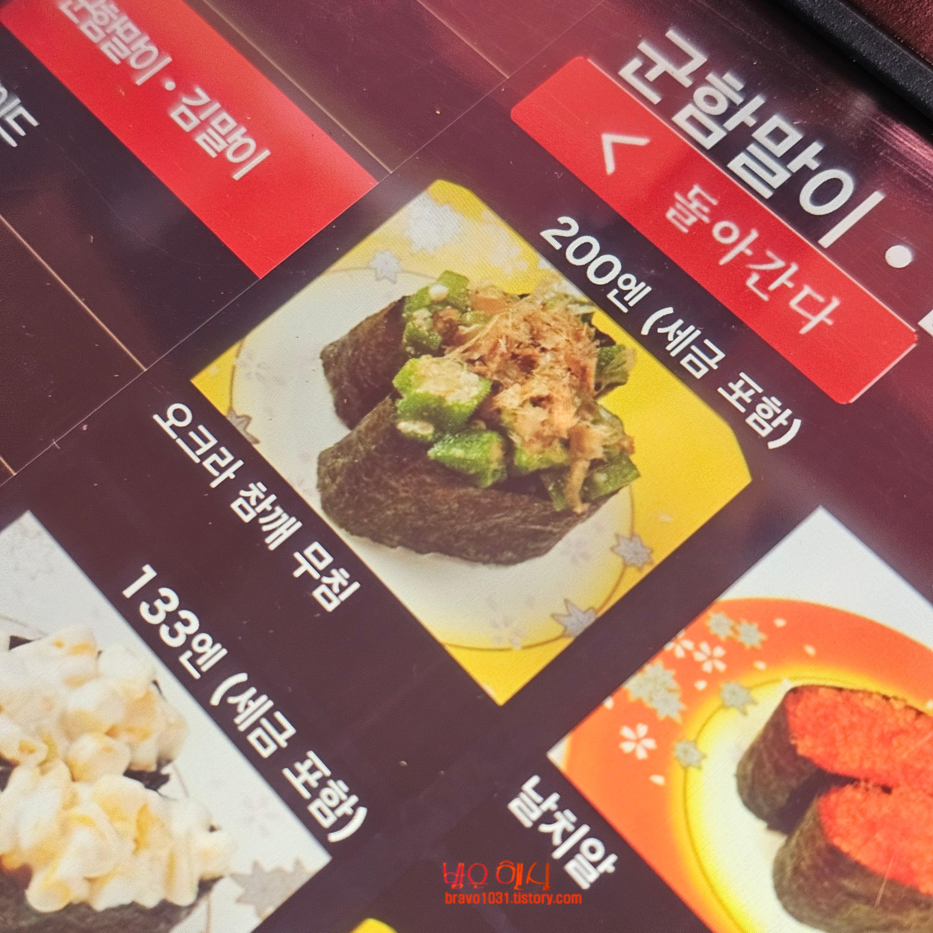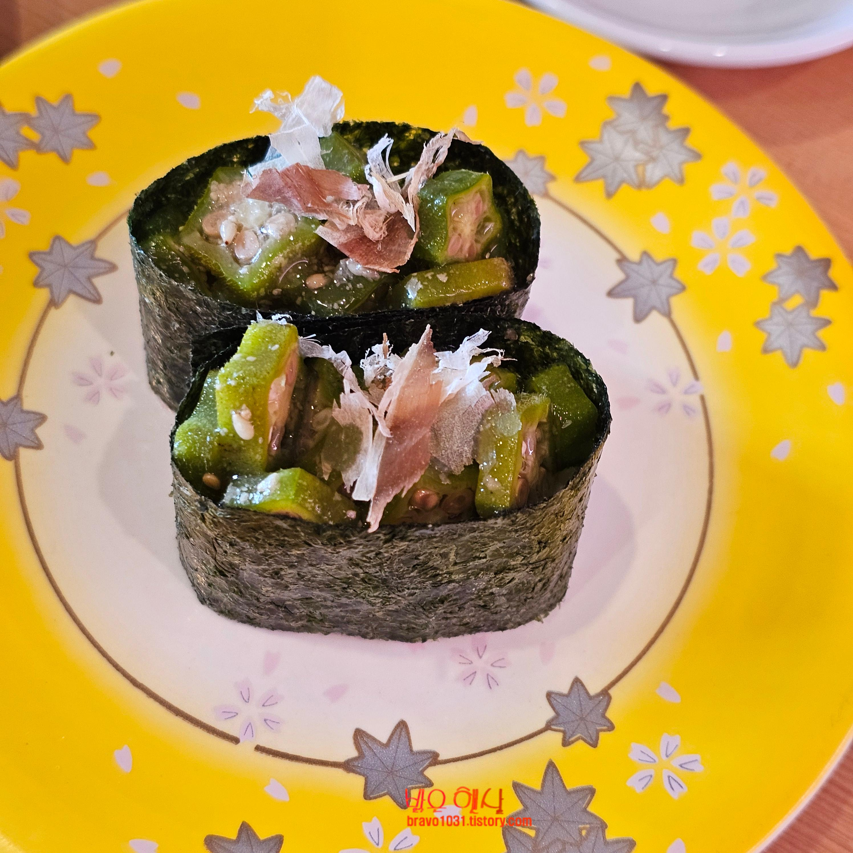 단품으로 주문한 초밥들 중 두번 주문한 것은 오크라였다.