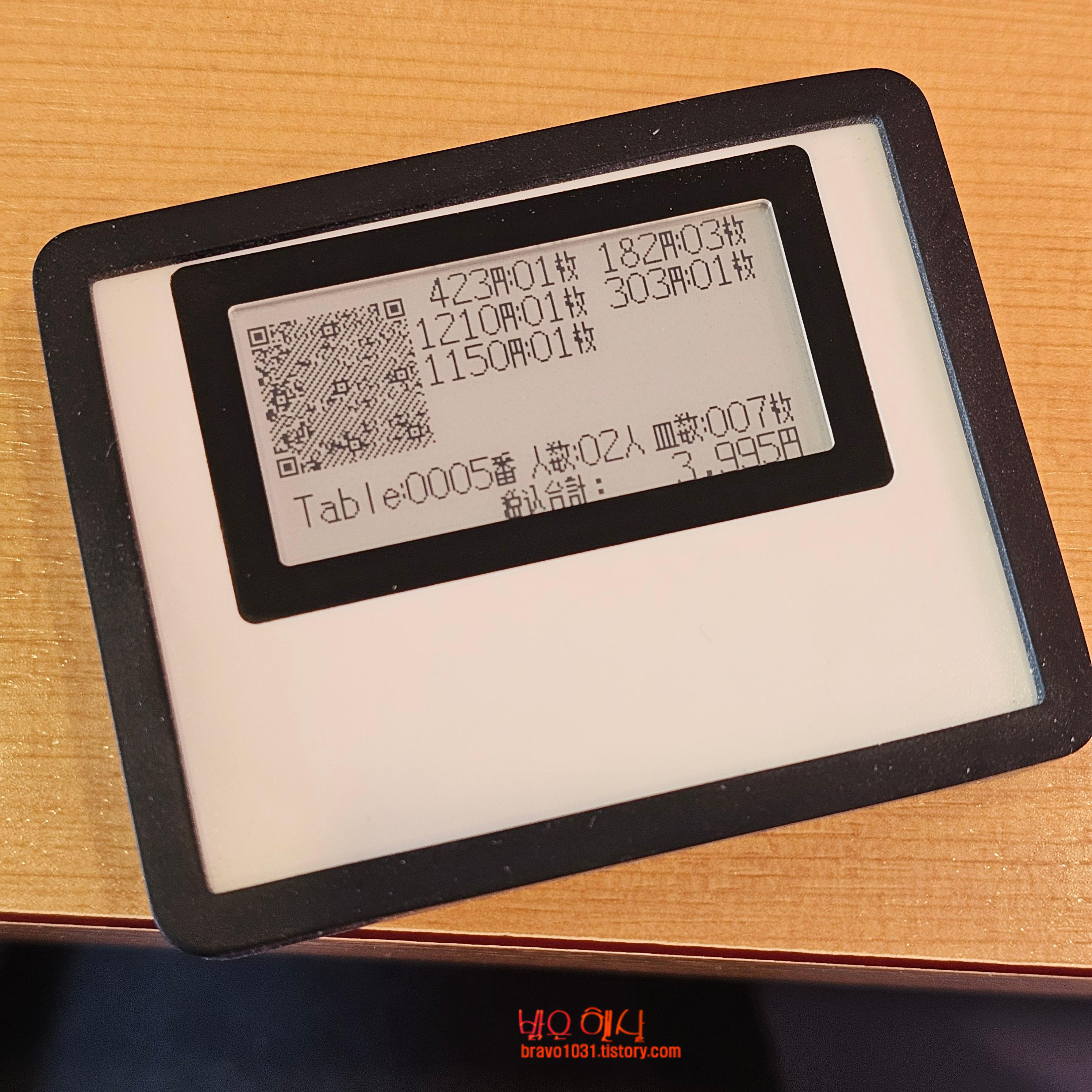 그리고 손에 들고 다니는 기계로 둥근 스시 접시들을 스캔하는데 그러면 바로 금액이 뜨게 된다.
