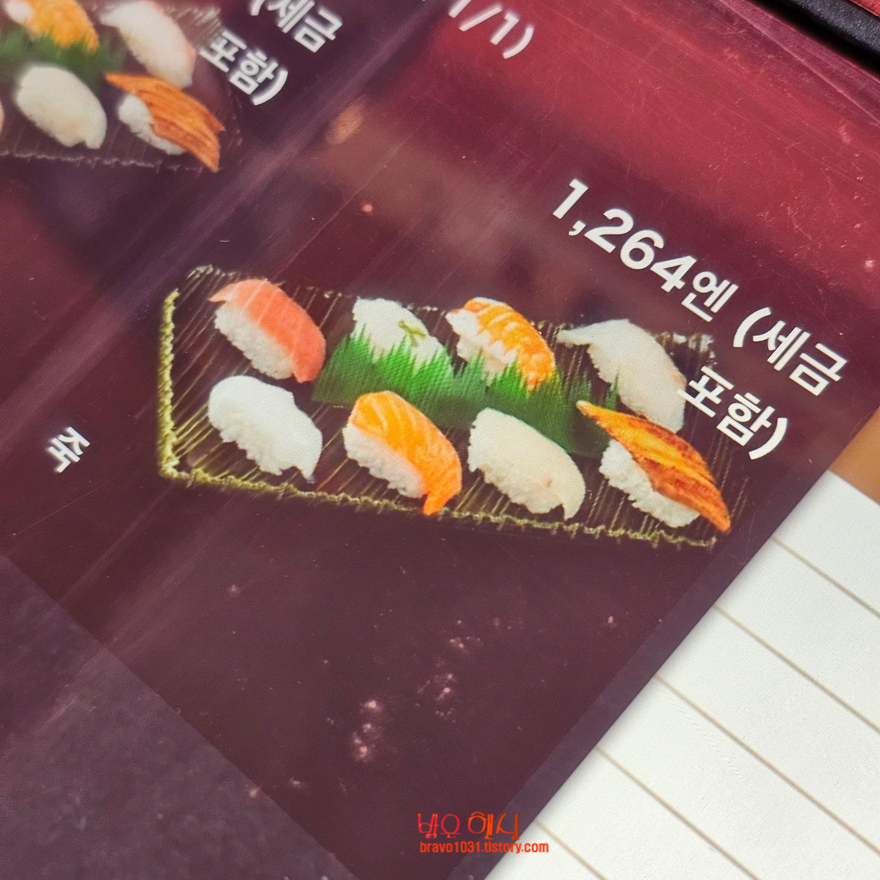 한국어를 터치하면 화면이 나오는데 초밥의 종류가 예전에 비해서 줄어 든 것 같다는 생각을 했다.