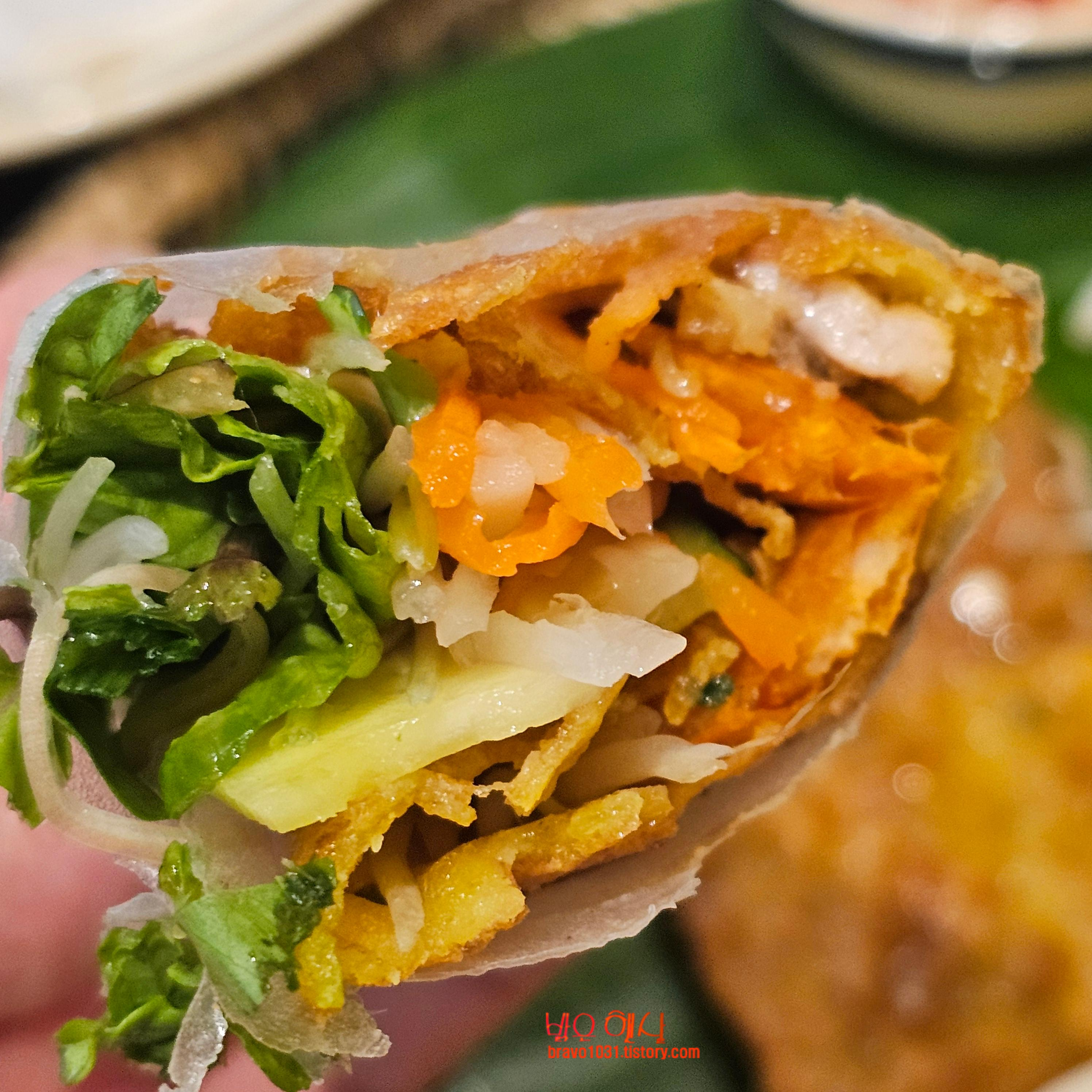 반쎄우 튀김 안에도 이것저것 야채와 새우살 같은 내용물이 들어 있어서 꽤 든든한 식사이기도 하다.