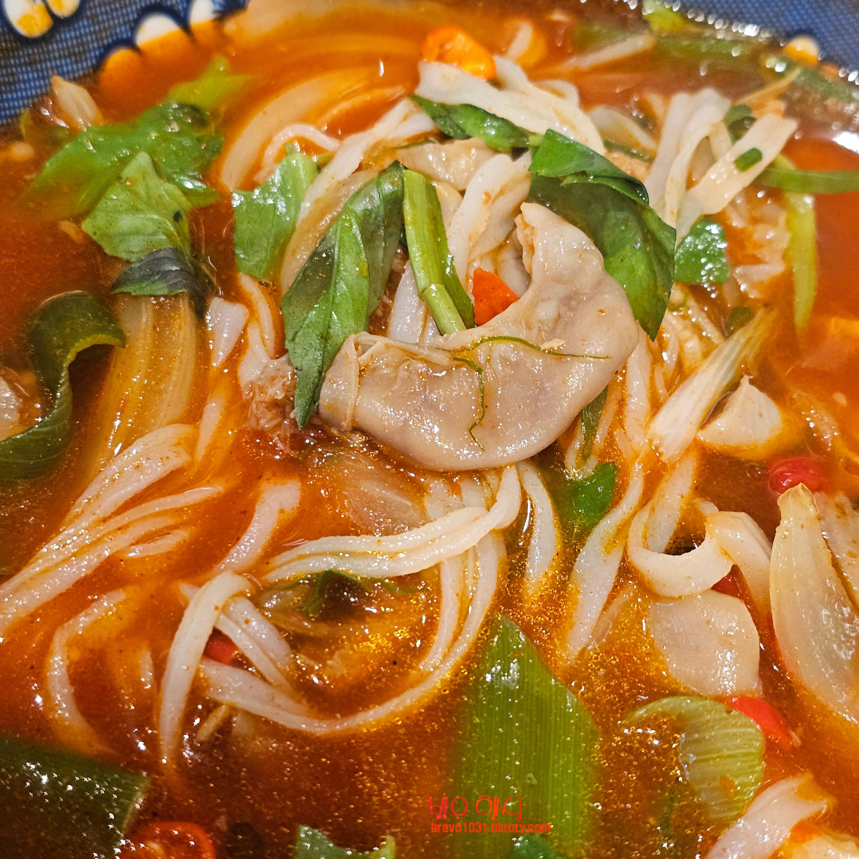 쌀국수는 조금 많이 퍼진듯 했지만 나쁘지 않았고 육수는 그닥 맵지는 않았다.