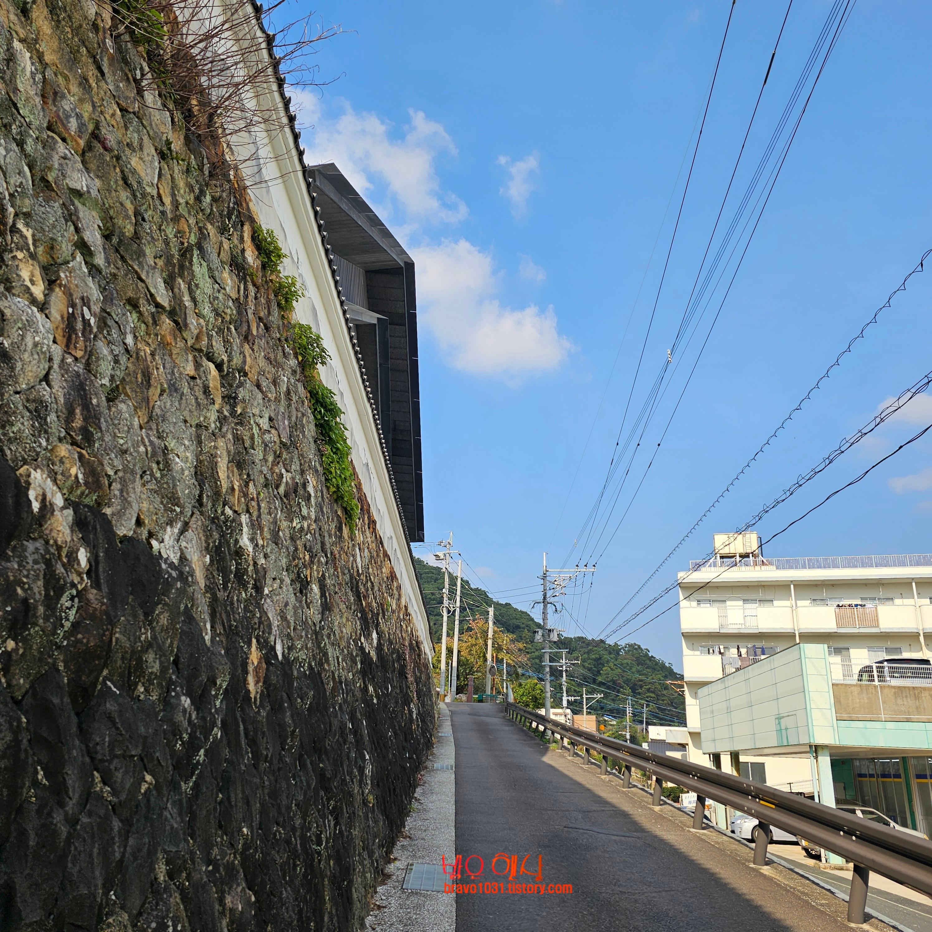 쓰시마 박물관의 입구는 돌벽이 시작되는 곳에 나 있는 좁은 도로를 따라 올라가면 된다.