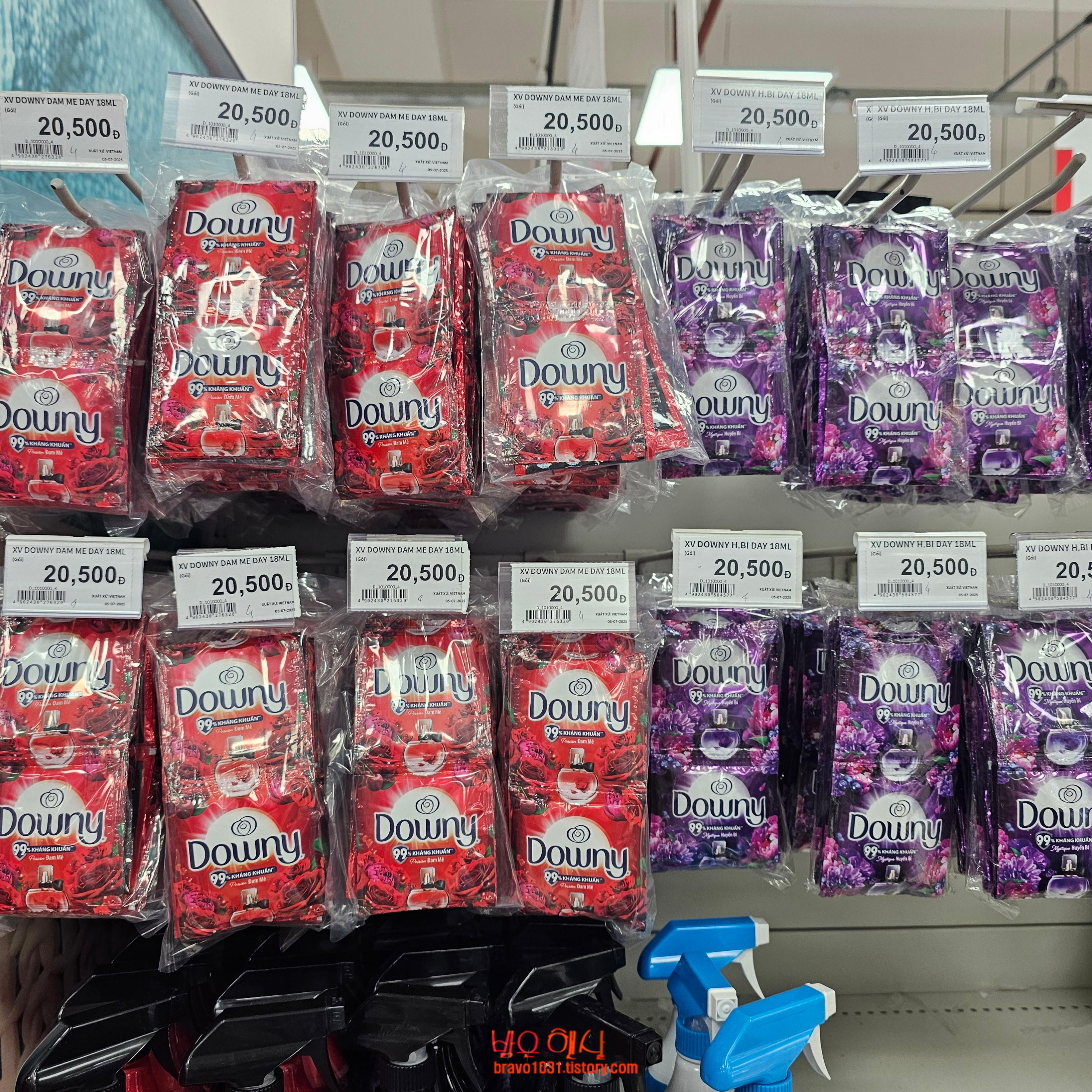 졸리마트에서 다우니는 12개 들어가있고 22,000동이었고 콤포트는 10개 들어서 19,000동이었다.