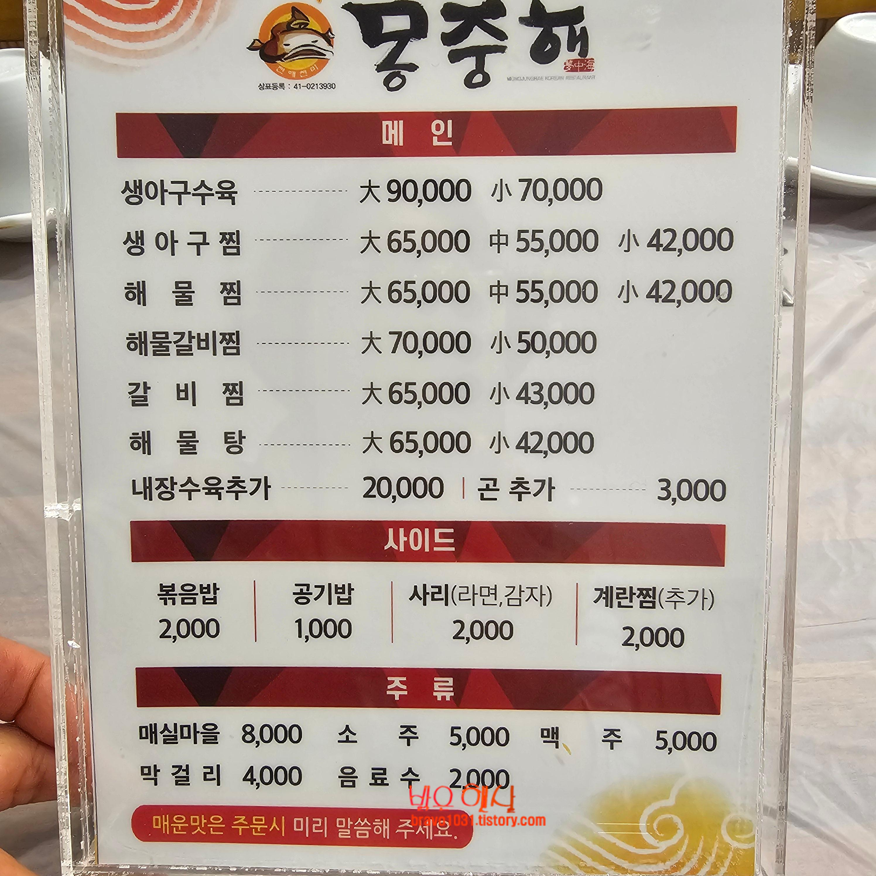 일반적인 해물찜집인듯 했는데 내부는 좁았고 테이블 간격도 좁았고 사람은 많아서 정말 복잡한 집이었다.