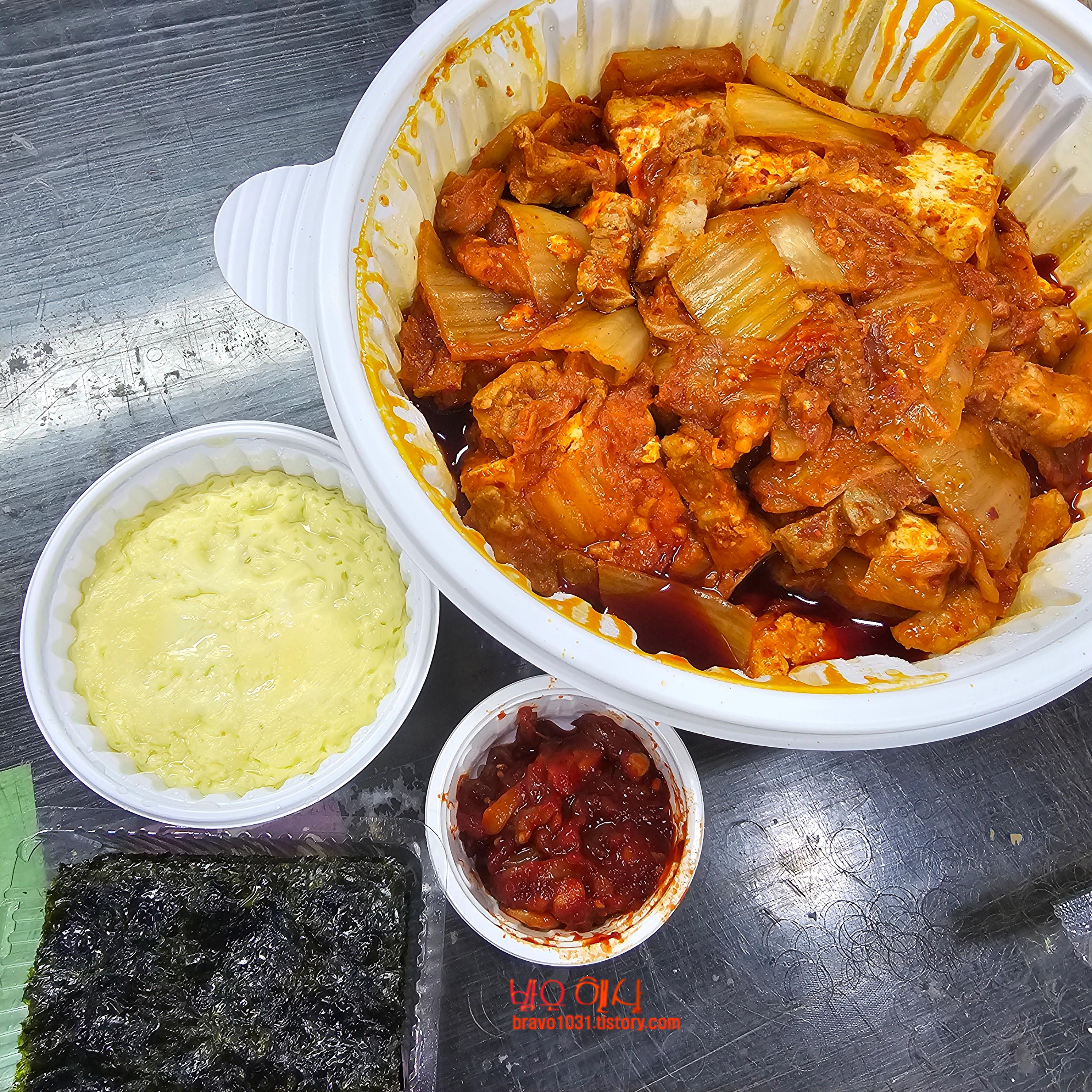 오랜만에 공방에서 저녁으로 김치찜을 주문했다.