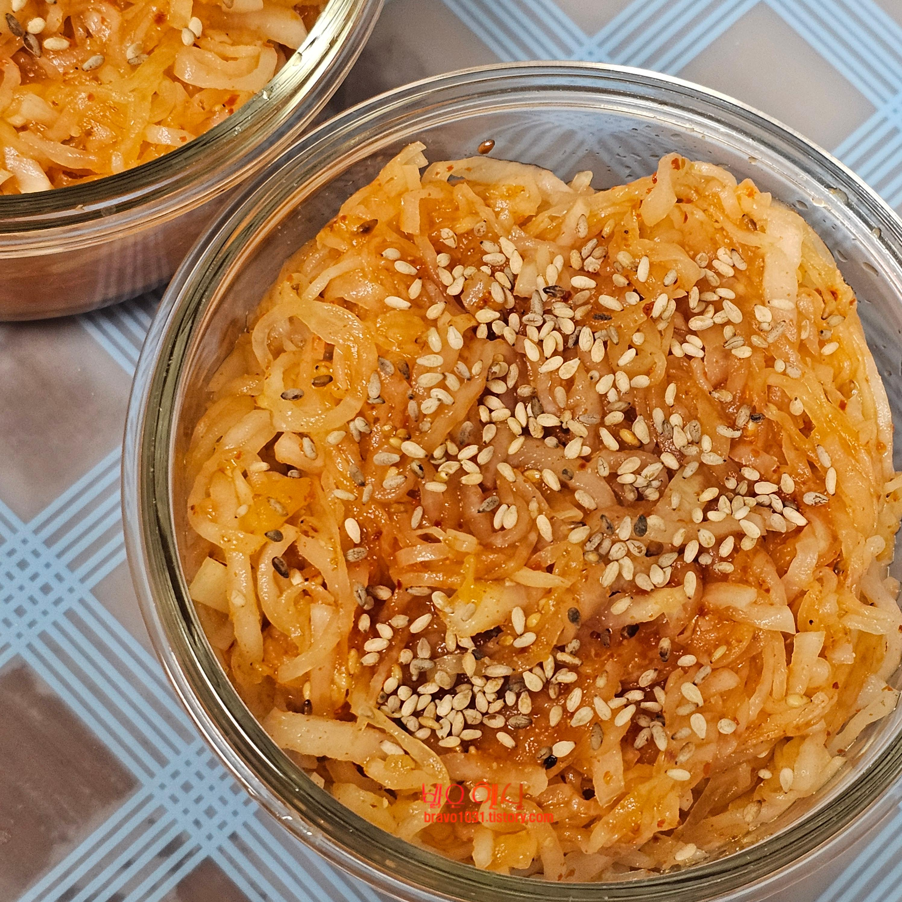 가끔 찬이 없을때는 계란 후라이해서 무생채만으로 비벼 먹어도 맛있으니까.