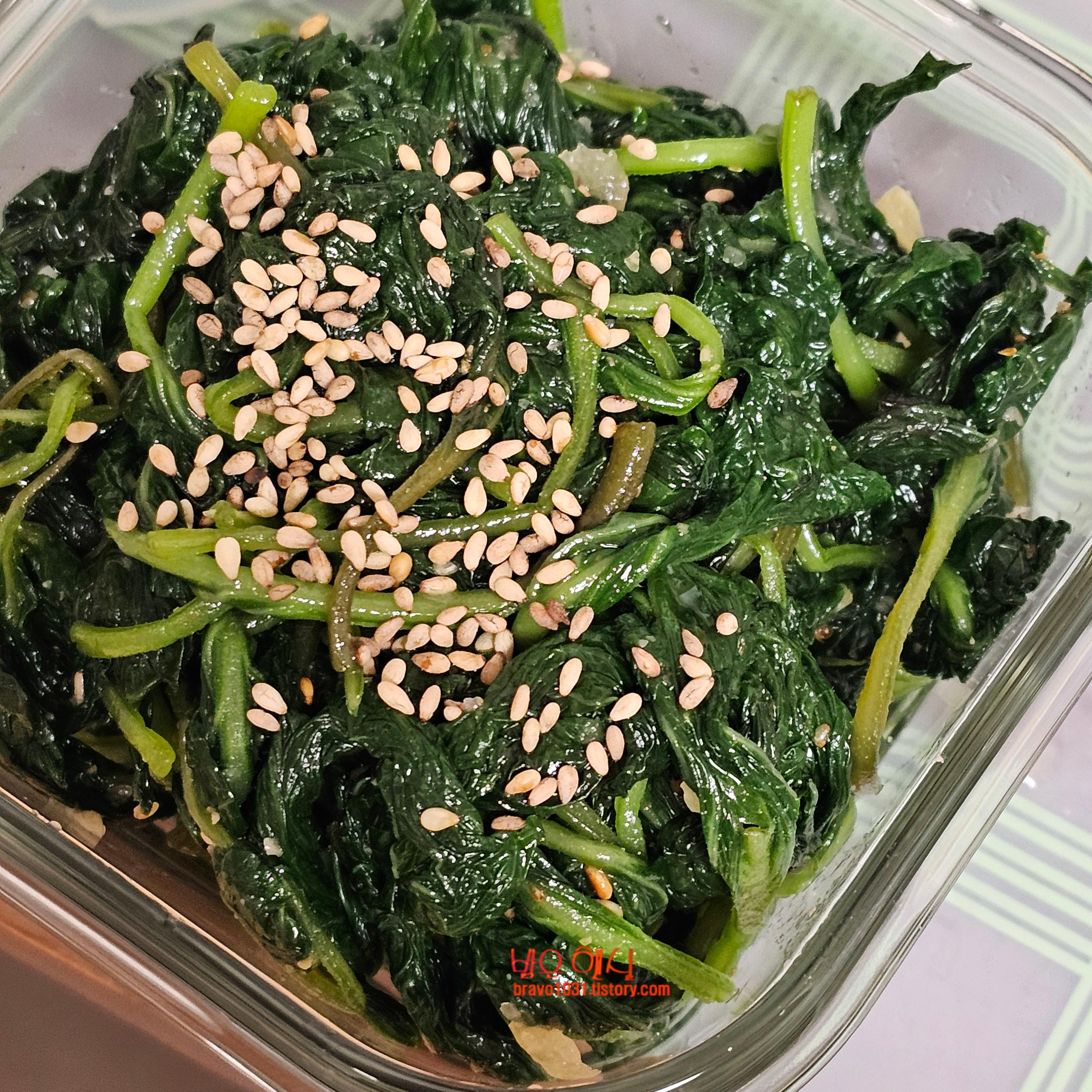 고추가루가 들어간 콩나물무침 보다는 맑게 소금과 참기름, 깨만으로 무치는 나물을 더 좋아하는 편이라 우리집은 매번 이렇게 하얗게 무친다.