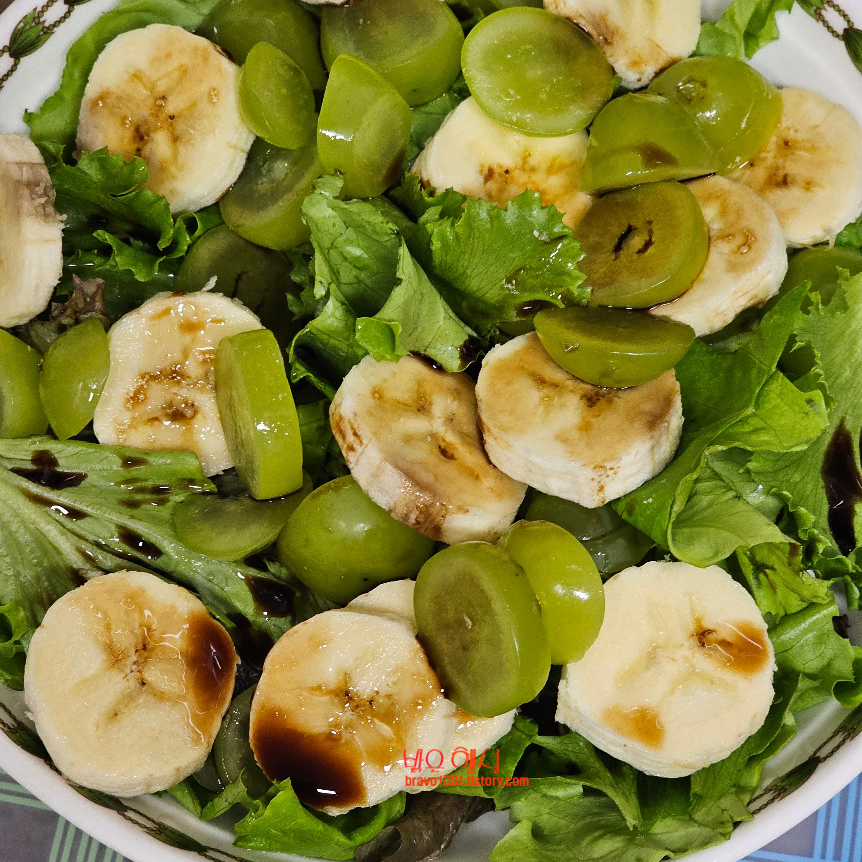 샤인머스켓이나 바나나가 달아서 올리브 오일이 없이 발사믹 식초만으로도 맛있게 먹을 수 있었다.