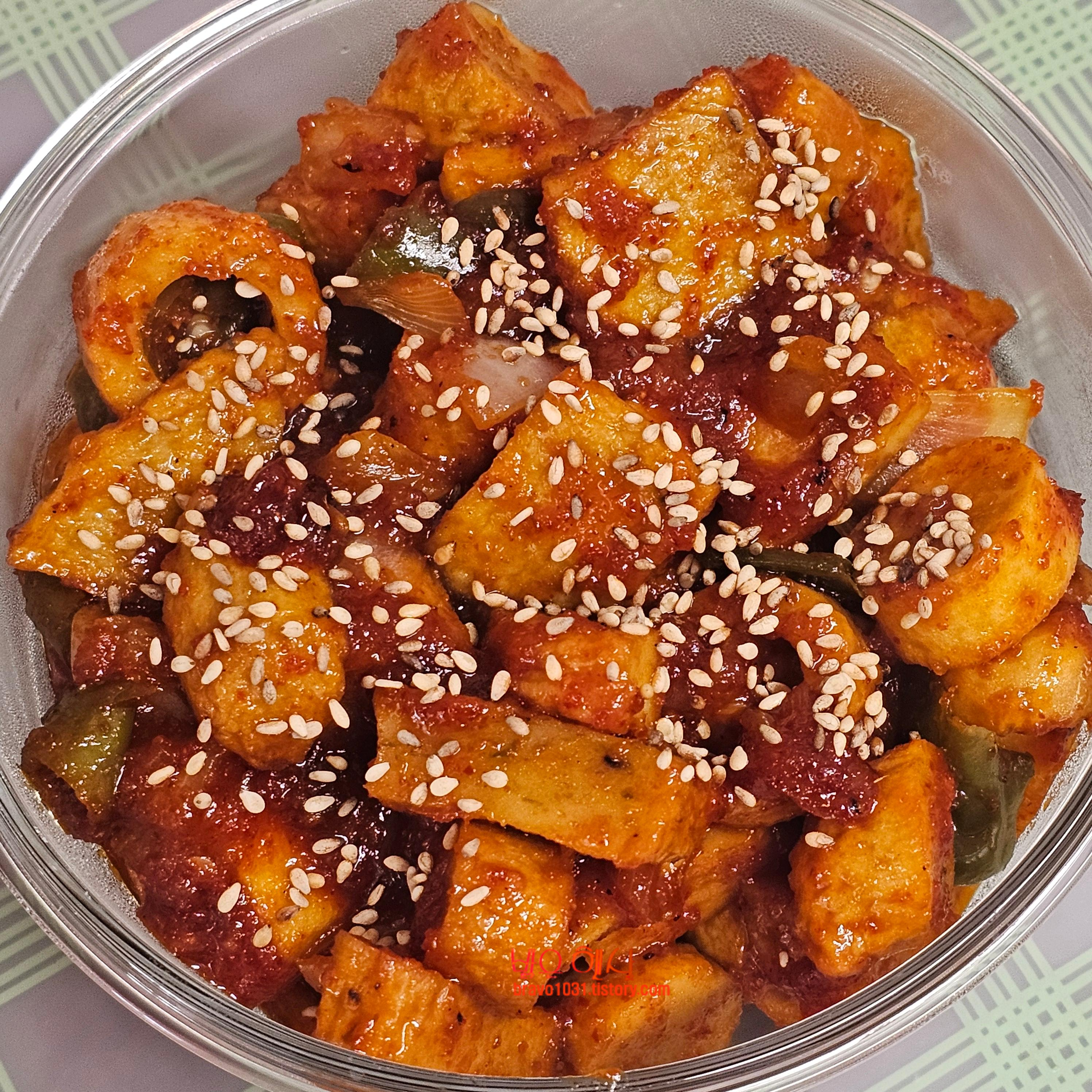 2kg이나 구입했는데 밀가루 맛이 너무 많이 나서 도저히 어묵탕이나 어묵국은 못 해 먹을 맛이라 양념맛으로 먹을 수 있는 볶음을 했다.