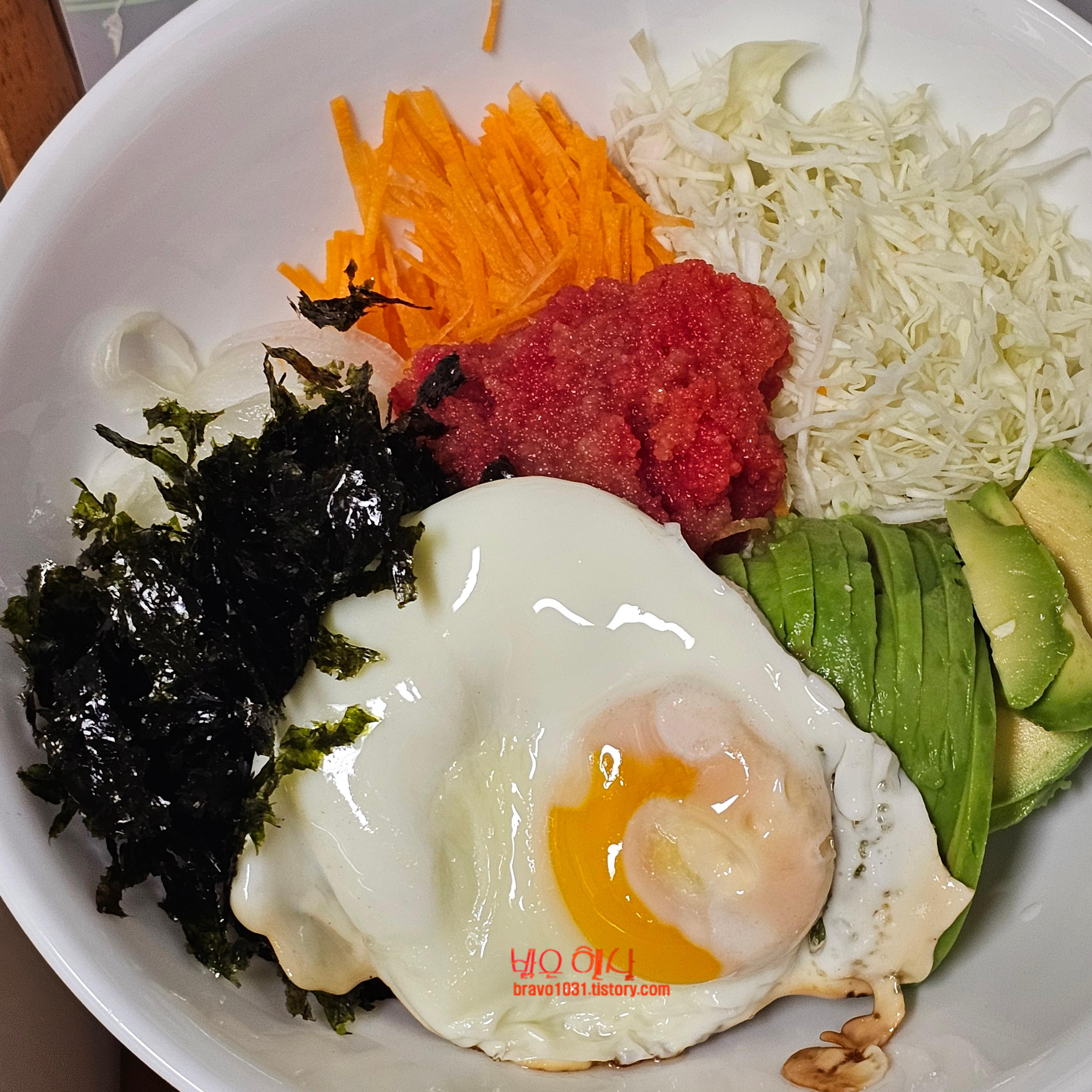 자주 먹어도 질리지 않는 명란아보카도 비빔밥이라 좋은 것 같다.