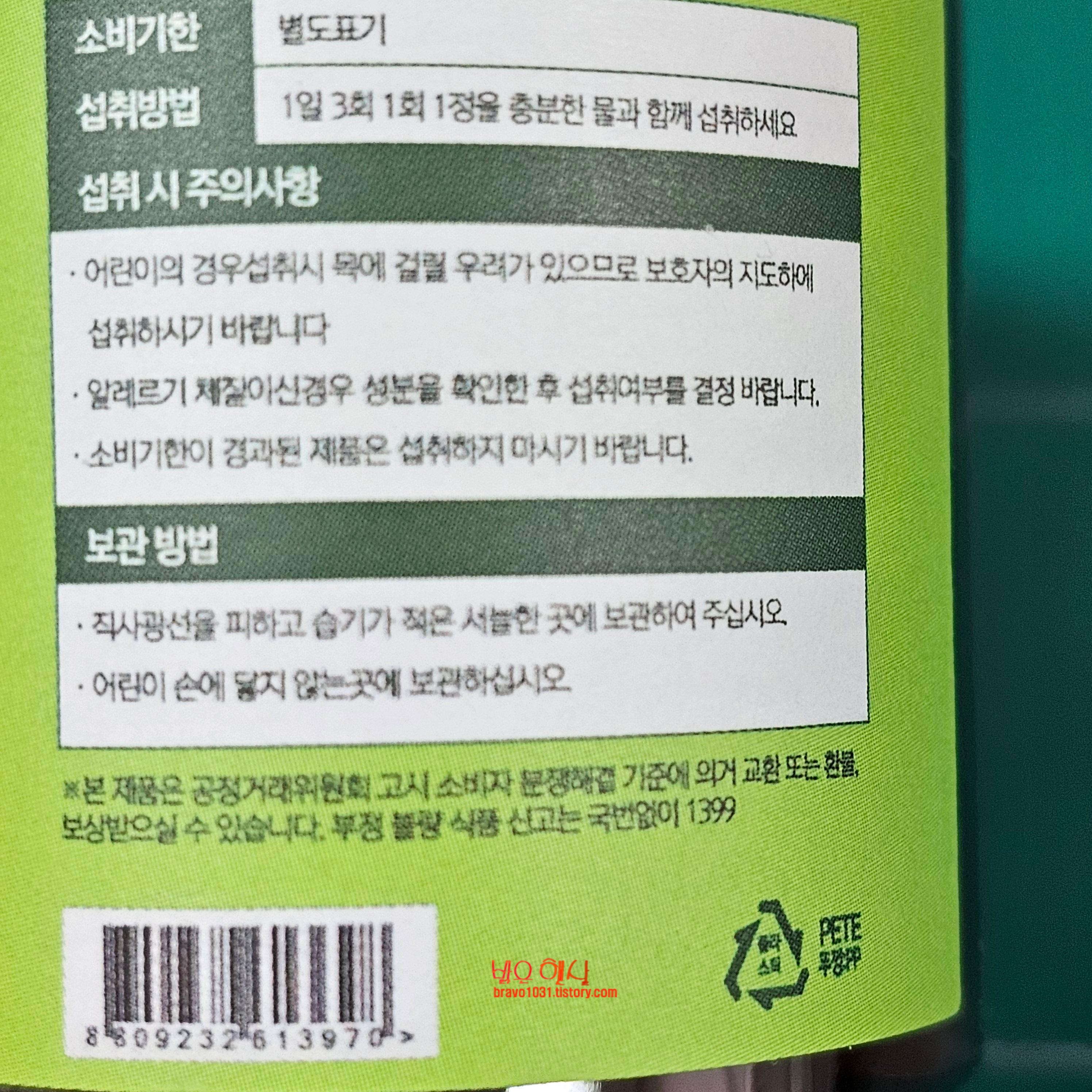 거기다 찾아 보니 용법용량에 하루 세알로 나와 있어서 하루 세번 챙겨 먹는 것도 부담스러웠기에 더욱 구입을 할 생각을 하지 않았었다.