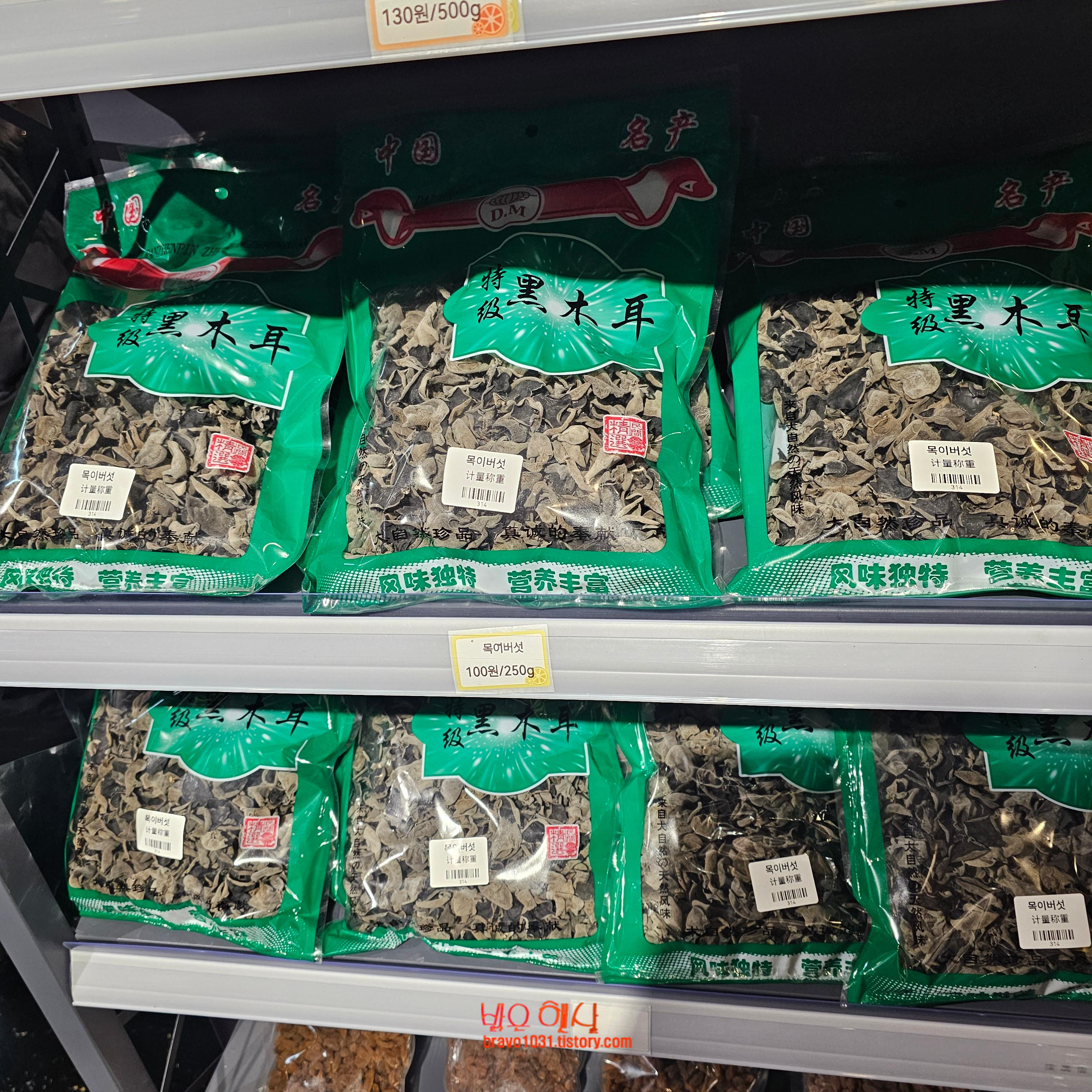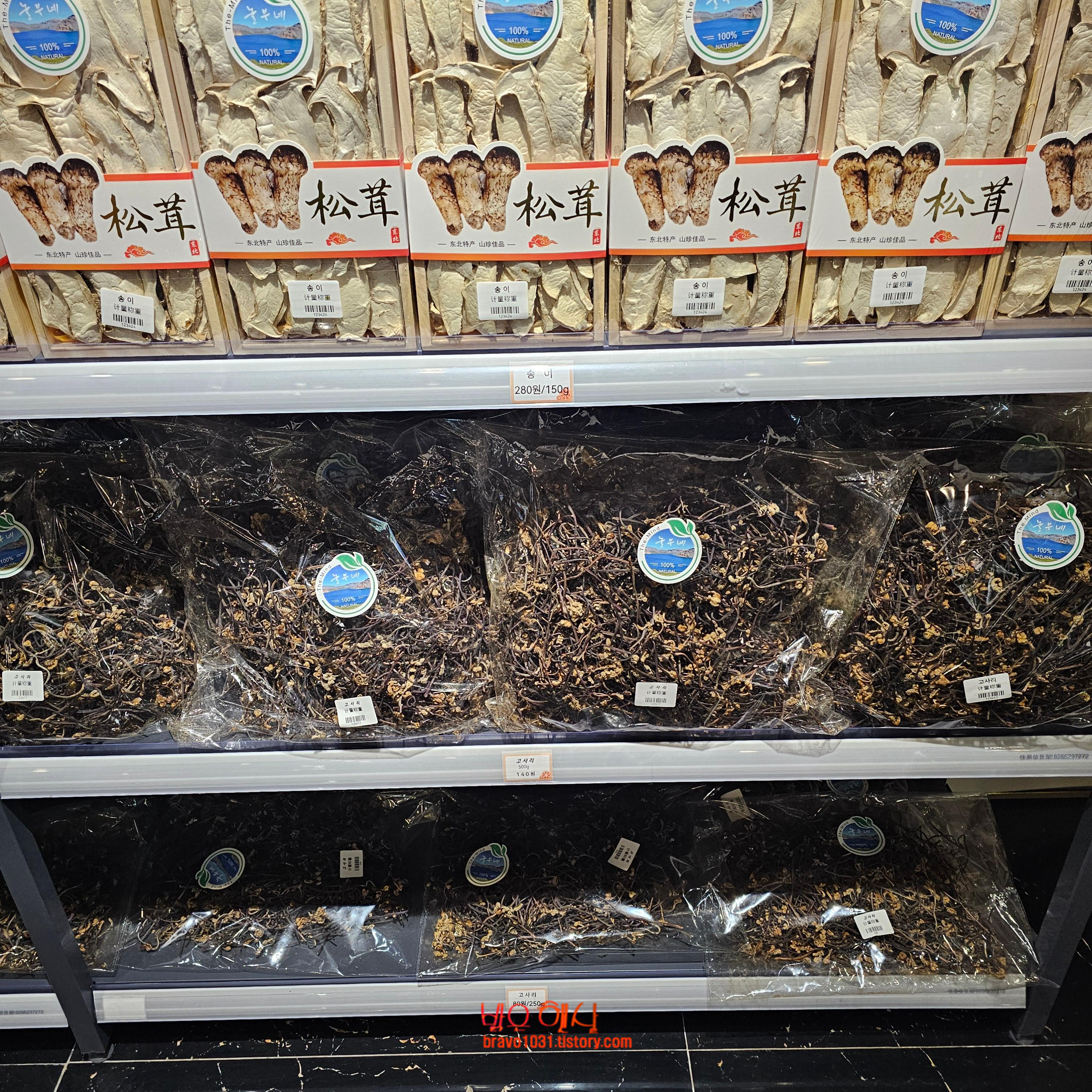 낮에 들렸던 마트에서 건목이버섯의 g을 확인하지는 않았지만 한 봉에 10위안 살짝 넘기는 금액으로 구입한 것을 생각하면 일반 마트가 이곳보다는 저렴한 듯 했다.