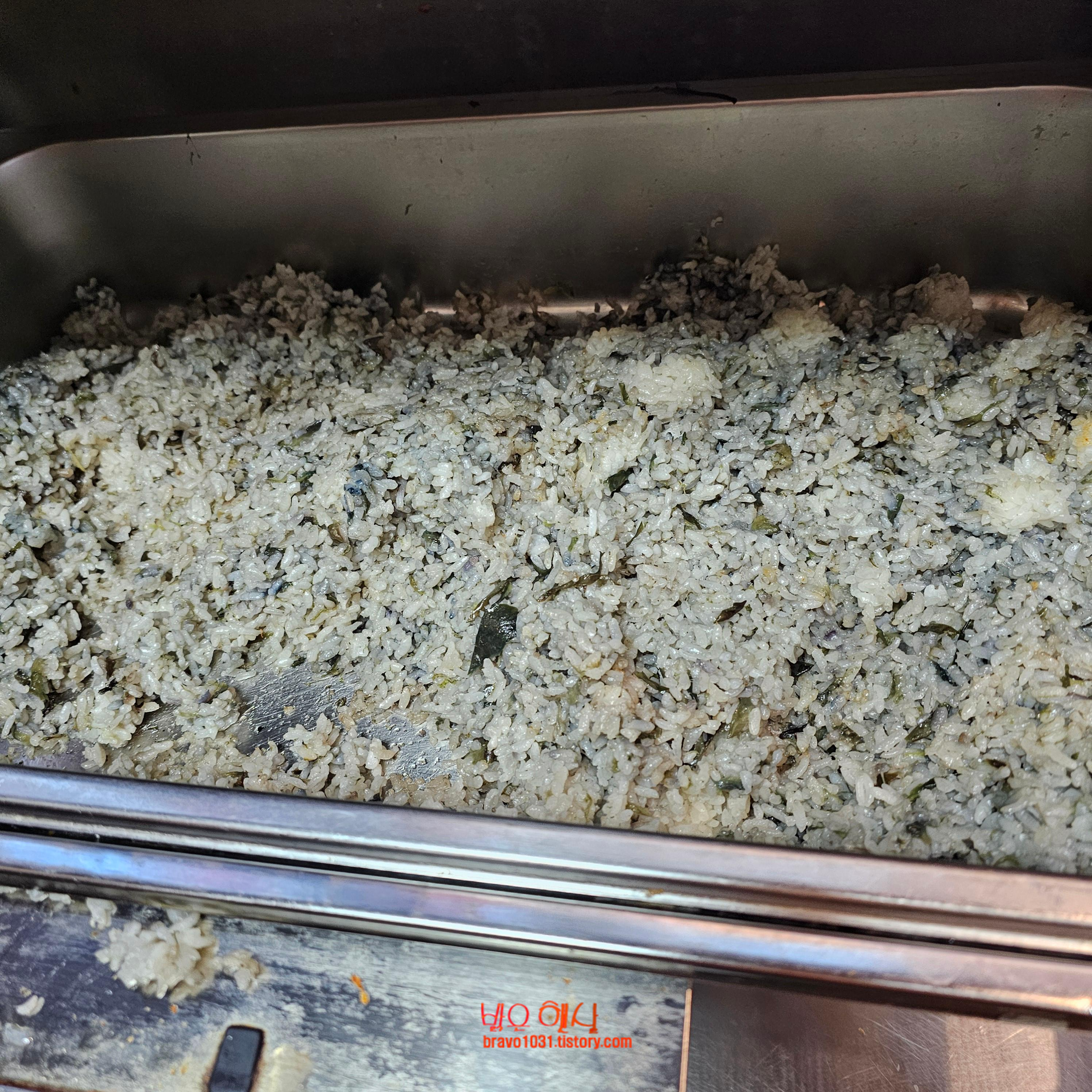 가지밥은 처음 보는 밥이라 작은 공기에 반 공기 정도 떠서 친구들이랑 맛을 봤는데 가지의 향이 많이 나는 밥은 아니었고 밥에 간이 되어 있어서 짭짤한 맛이었다.