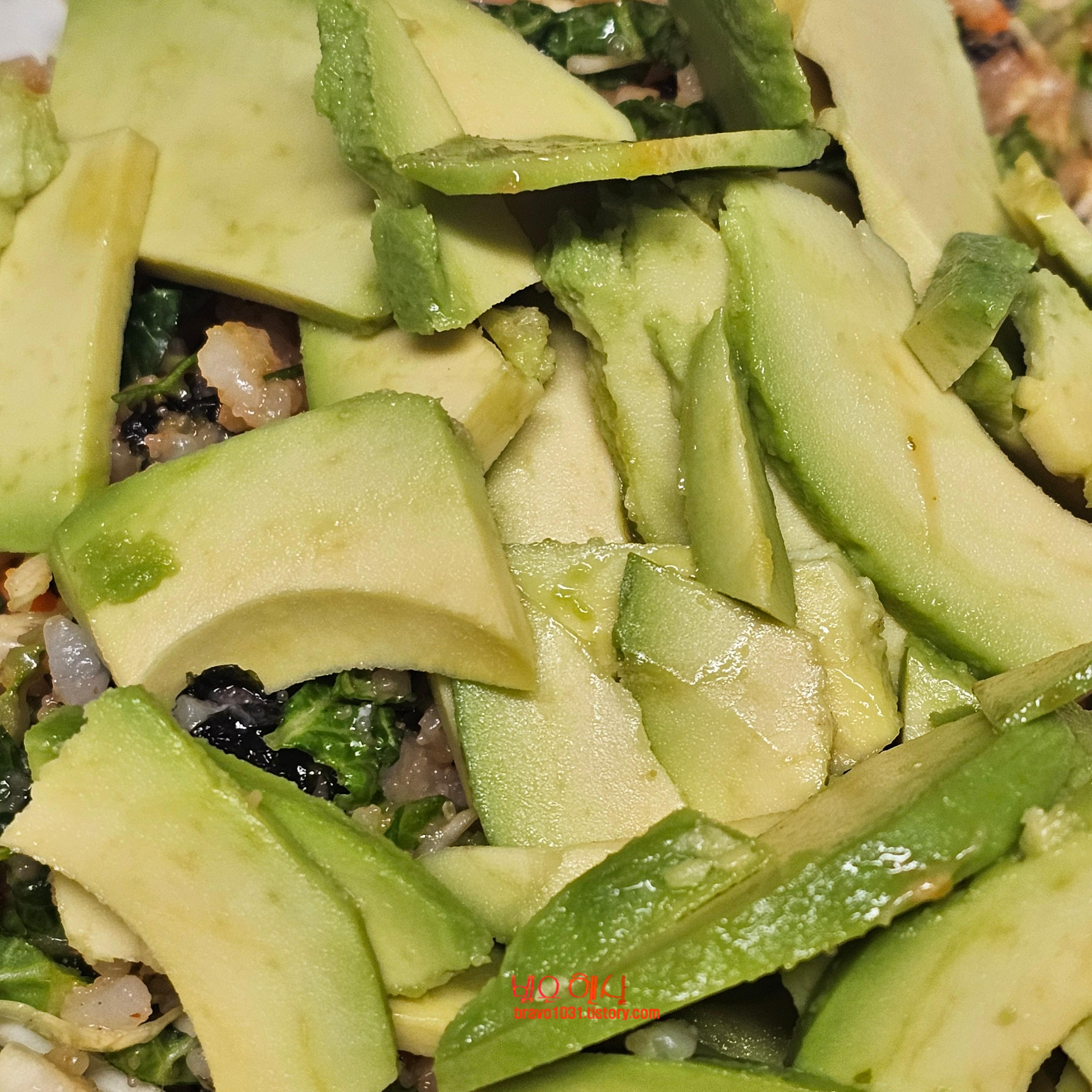 급하게 다 비빈 밥 위에 아보카도를 올리고 다시 비벼서 먹었는데 나쁘지 않았다.