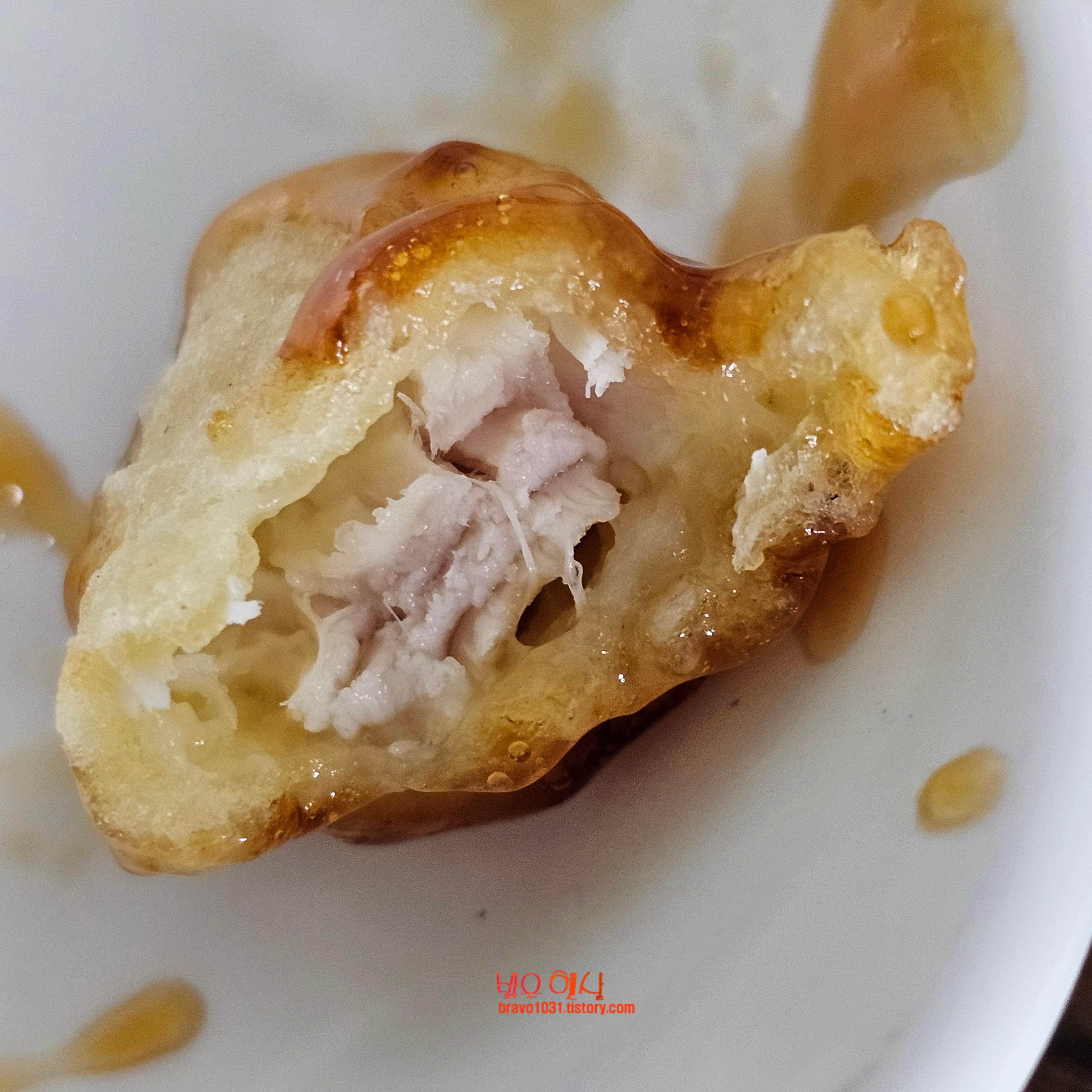겉은 바싹 하면서 속은 부들부들 한데 파에 공기층이 충분히 들어가 있다는 느낌이라고 해야 하나 그런 질기거나 퍽퍽함은 전혀 없는 탕수육이었다.