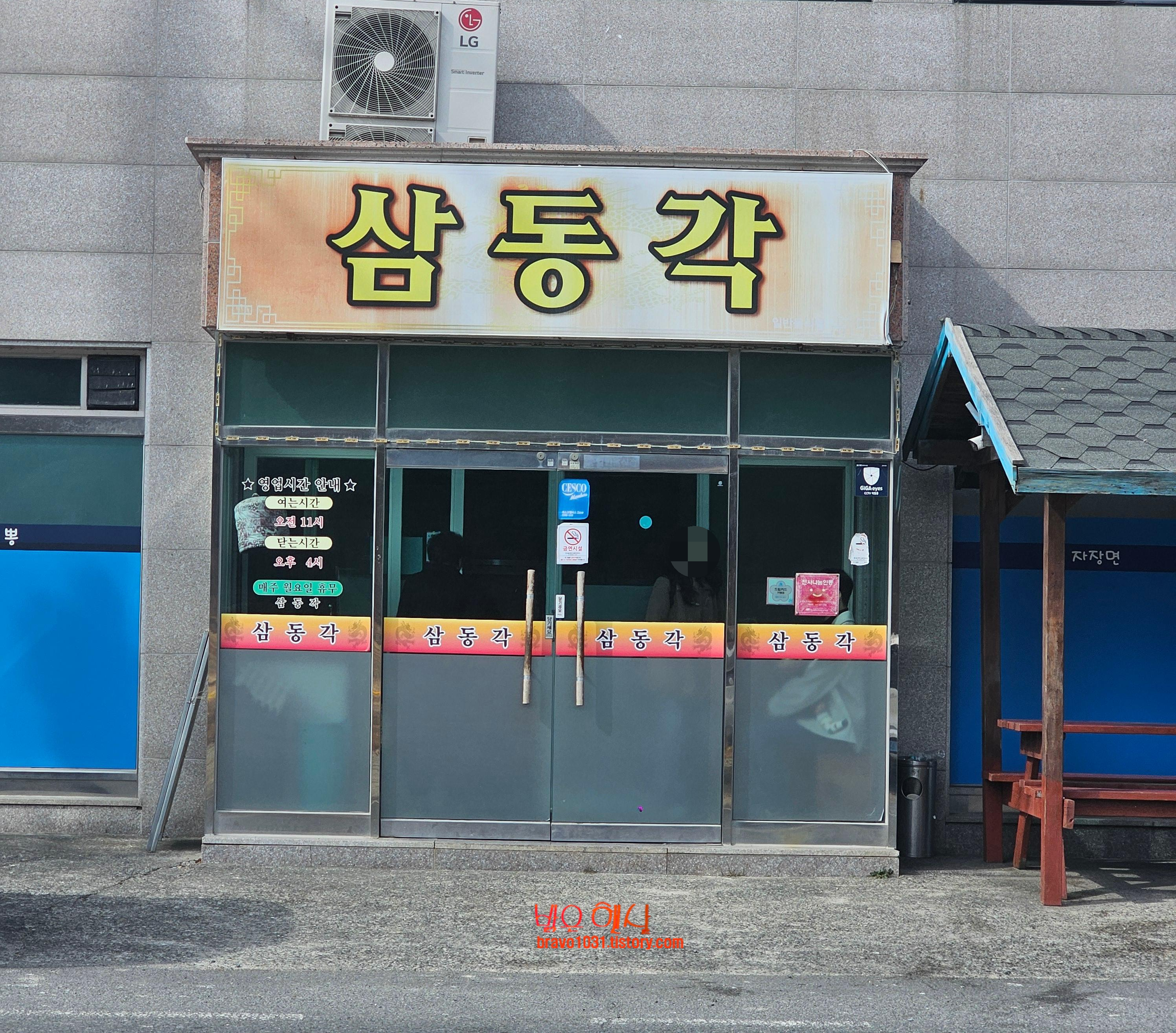 가게 주변으로 차량이 몇대 없어 보였지만 가게 앞 도로를 건너 공터에 주차가 많이 되어 있었는데 삼동각이라는 상호명을 모르고 갔다면 이 곳이 맛집인지는 알아 보지 못할 분위기였다.